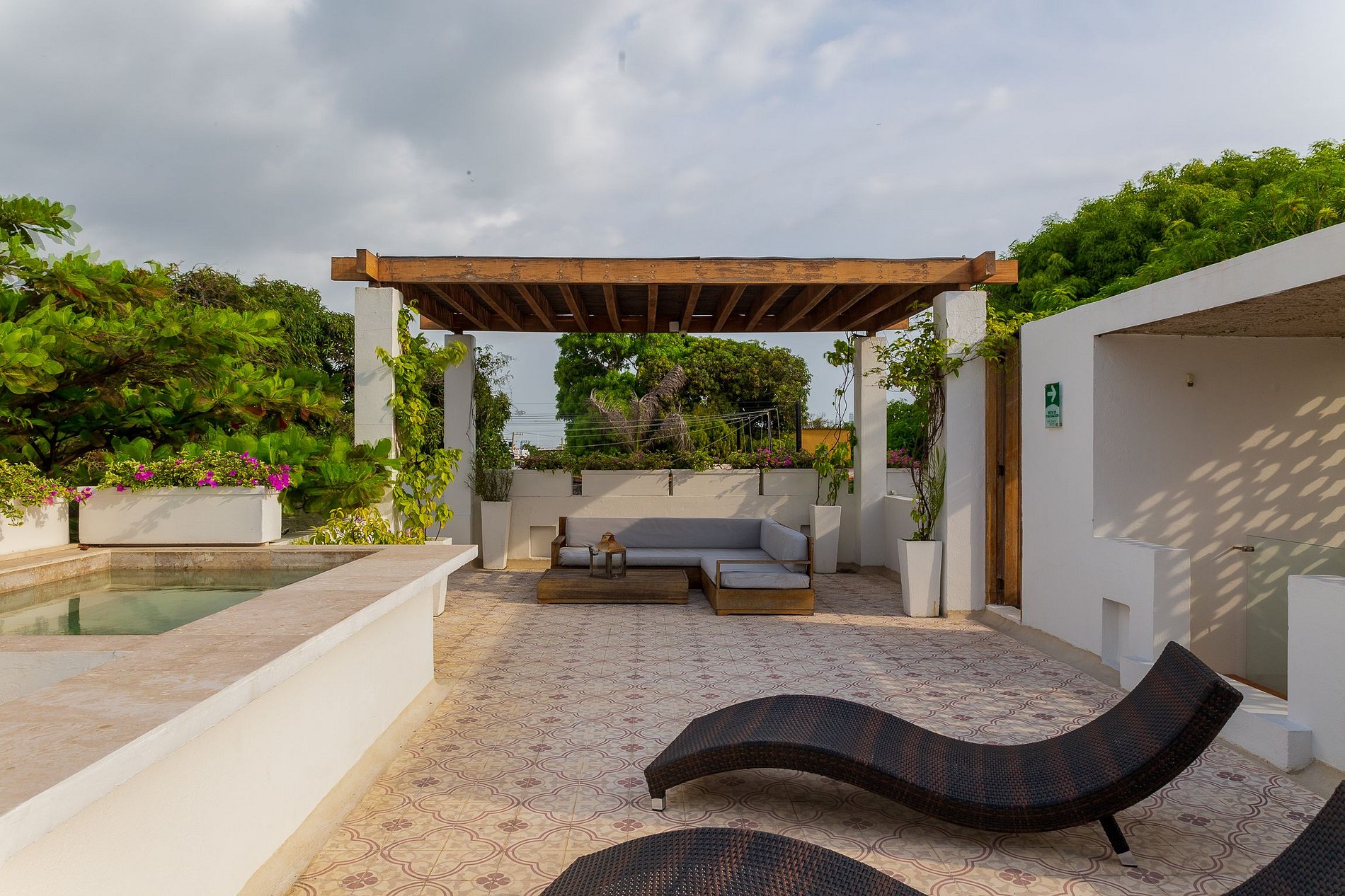 La maison se distingue par son joli patio central où un imposant amandier apporte toute la magie des tropiques dans la maison. Une incroyable piscine aux parois transparentes, une salle à manger, un toit où vous pourrez vous détendre dans le bain à remous en sentant la brise de Carthagène tout en profitant d'une vue magnifique sur la vieille ville, rendront votre séjour inoubliable. Le salon climatisé comprend une télévision connectée de 50 pouces et un grand canapé confortable. Toutes les chambres disposent de climatisation, d'une télévision connectée et d'une salle de bains privée toutes dotées de détails spéciaux pour les rendre uniques.