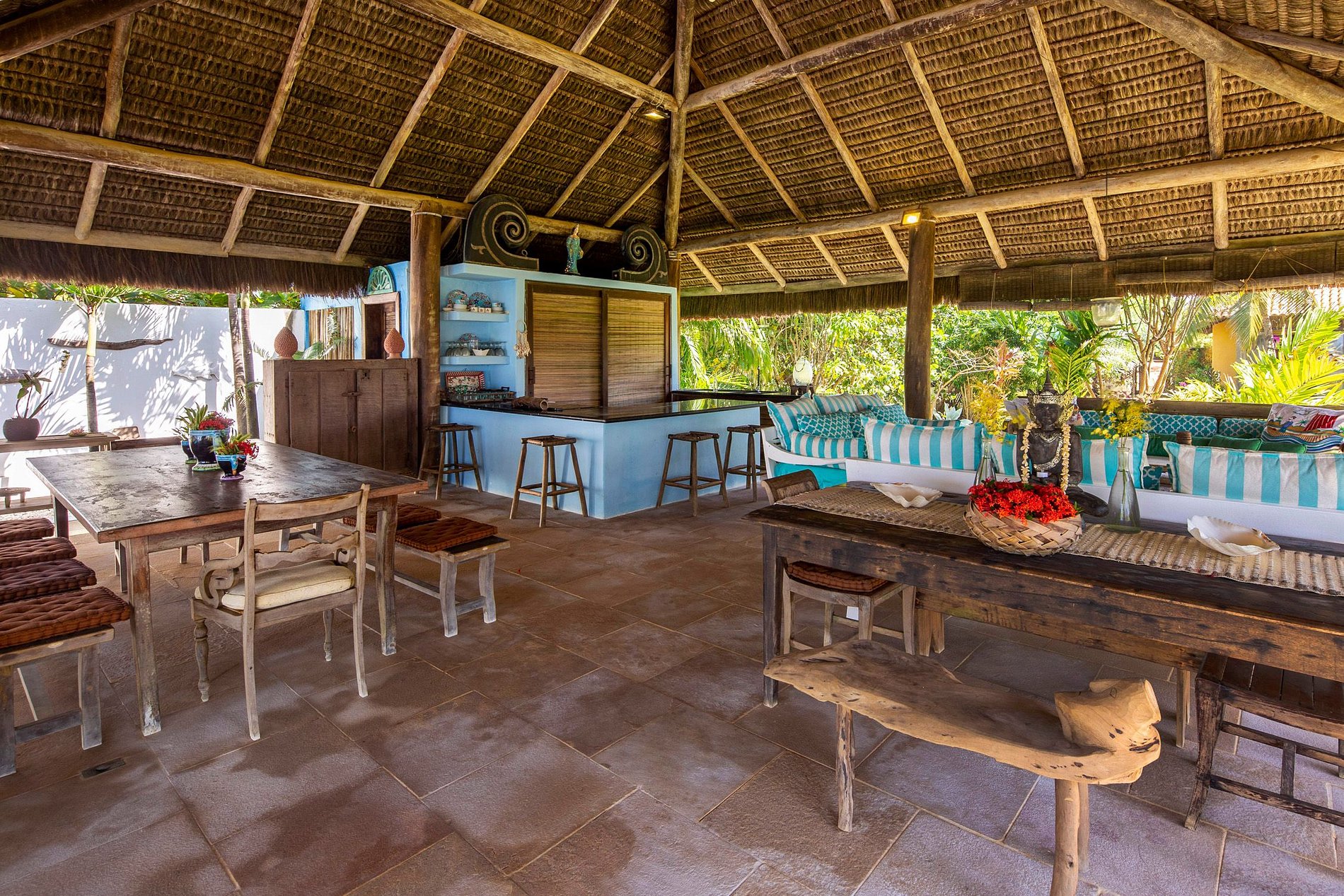 L'espace social extérieur avec un pied droit et un beau toit de piassava, est le lieu central de la villa, où vous pouvez profiter de la vue, le beau jardin bénéficiant d'une douce brise de mer.