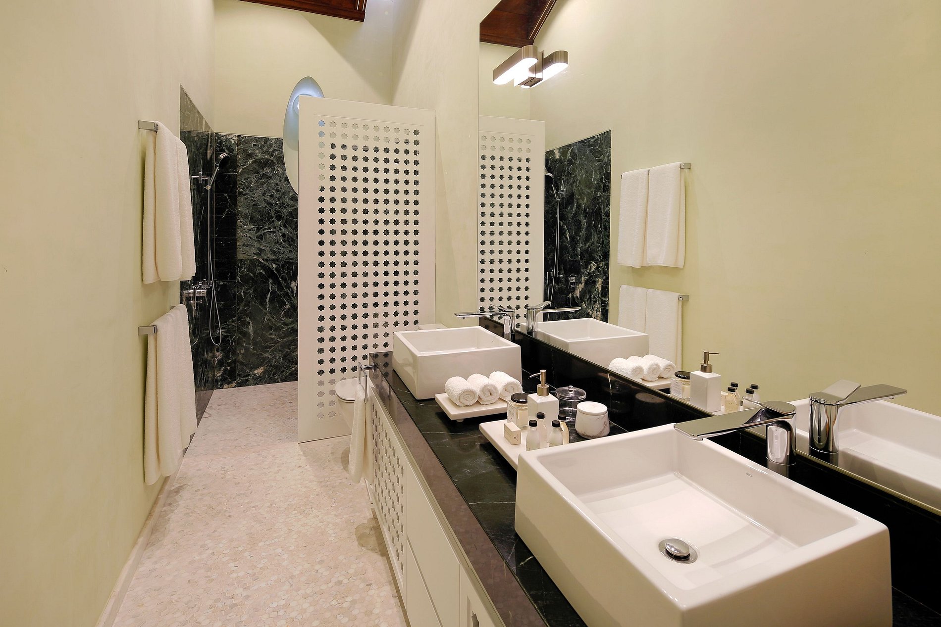 C'est une combinaison rustique avec des détails modernes et des objets de décoration très caractéristiques de la ville; comme des miroirs anciens, des vases colorés et des lampes de luxe. Fini en marbre et brique.
