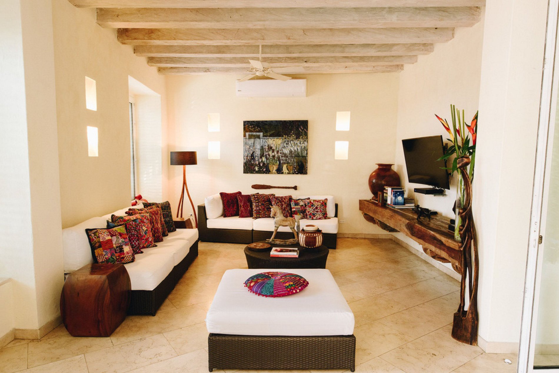 Au premier niveau, vous trouverez une salle de 7 places avec télévision, une grande cuisine fermée, une salle à manger ouverte et un spectaculaire bassin d’aquamarines, à côté d’un mur végétal, avec des plantes naturelles très typiques de la région.