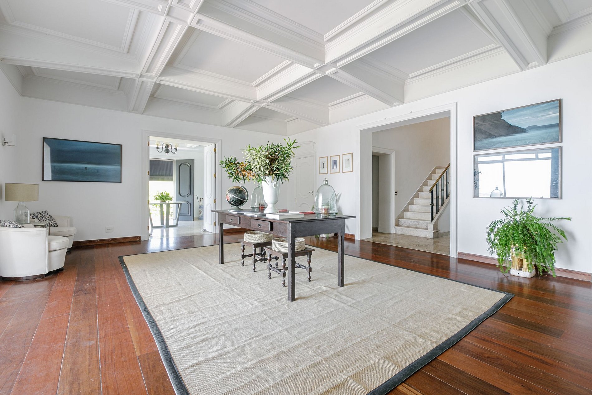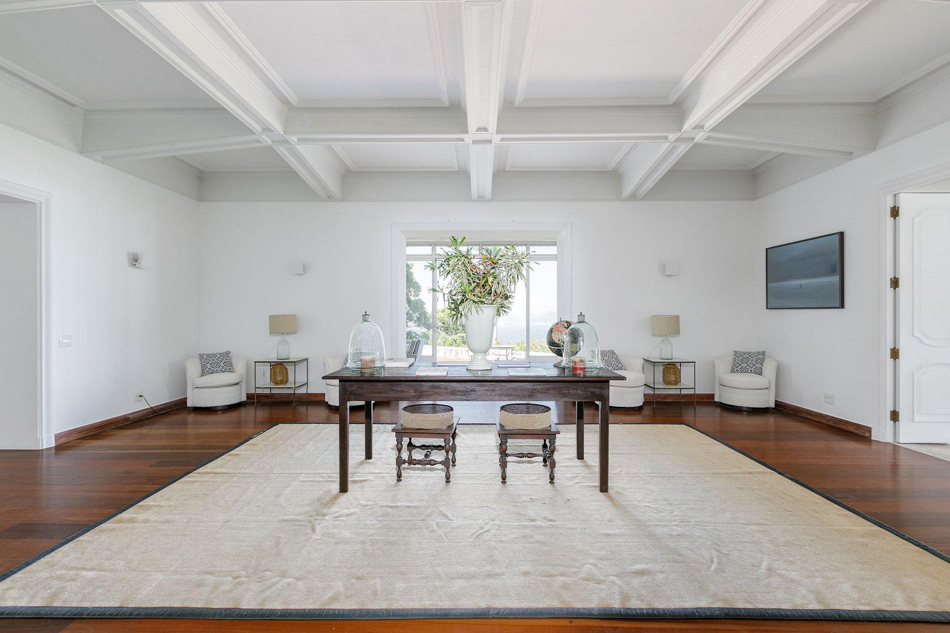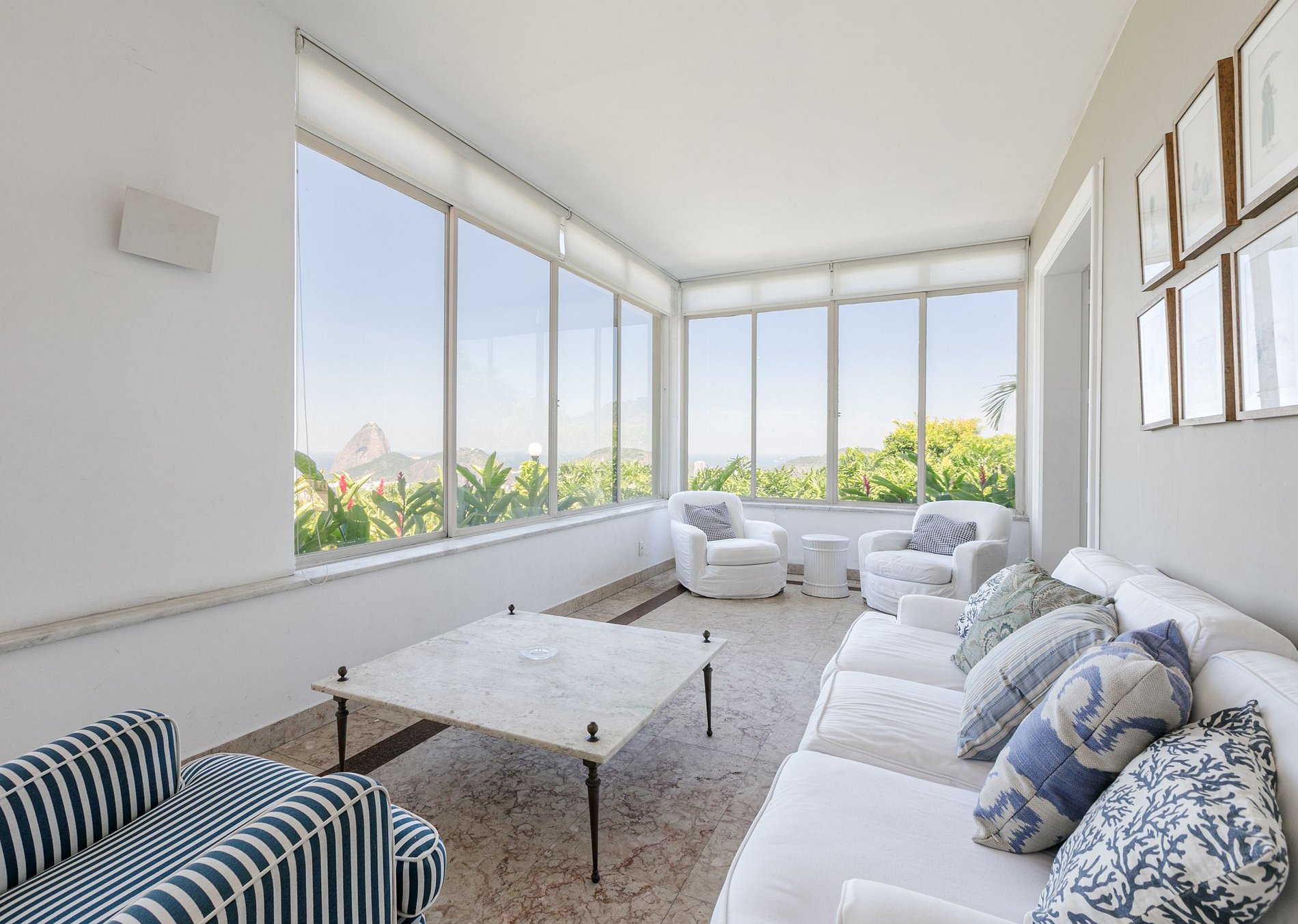 Cette fabuleuse villa à l’allure majestueuse se cache dans les hauteurs de Santa Teresa. Située dans une copropriété privée, la sécurité y est assurée 24h sur 24h.