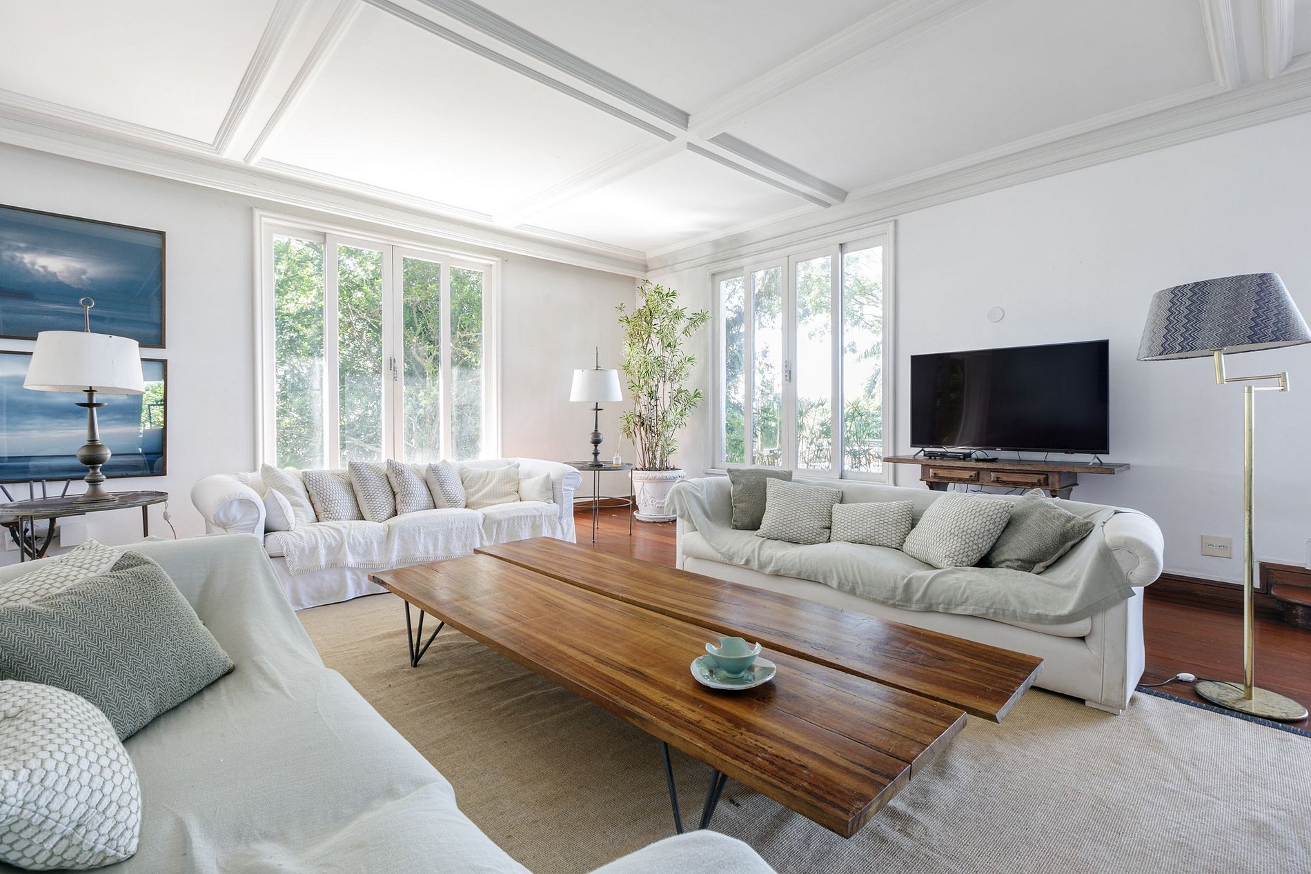 Cette fabuleuse villa à l’allure majestueuse se cache dans les hauteurs de Santa Teresa. Située dans une copropriété privée, la sécurité y est assurée 24h sur 24h.