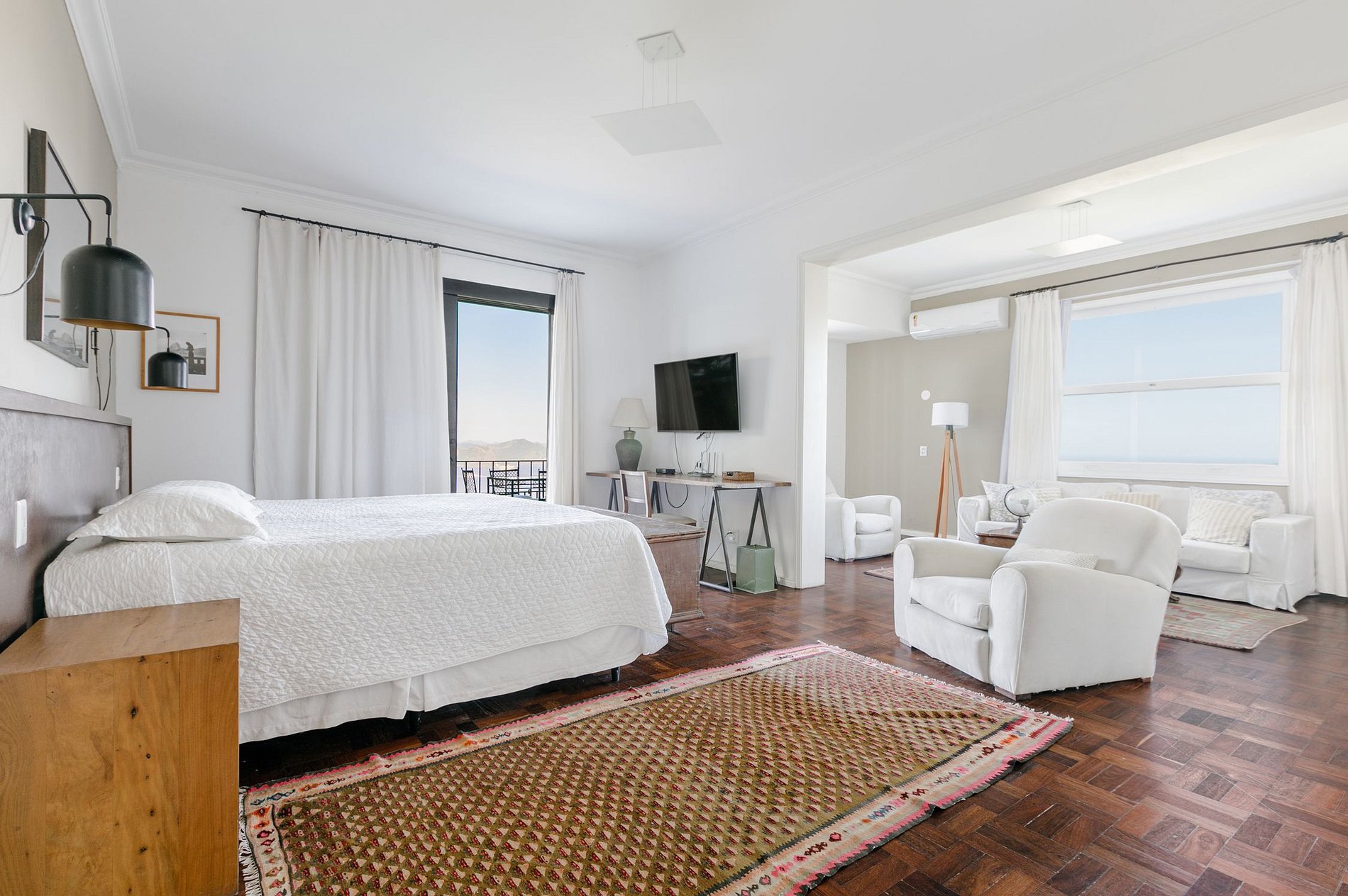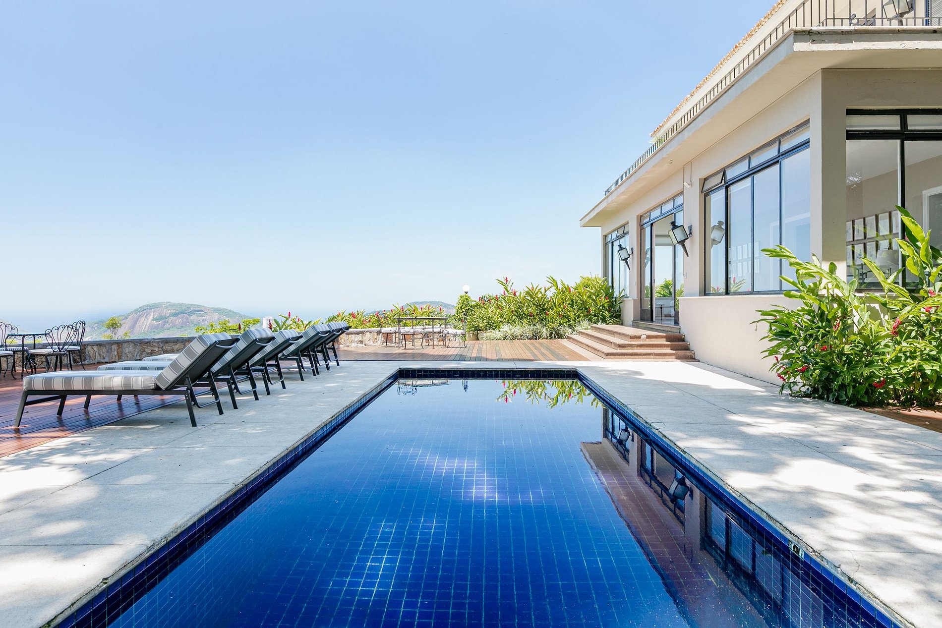 Cette fabuleuse villa à l’allure majestueuse se cache dans les hauteurs de Santa Teresa. Située dans une copropriété privée, la sécurité y est assurée 24h sur 24h.
