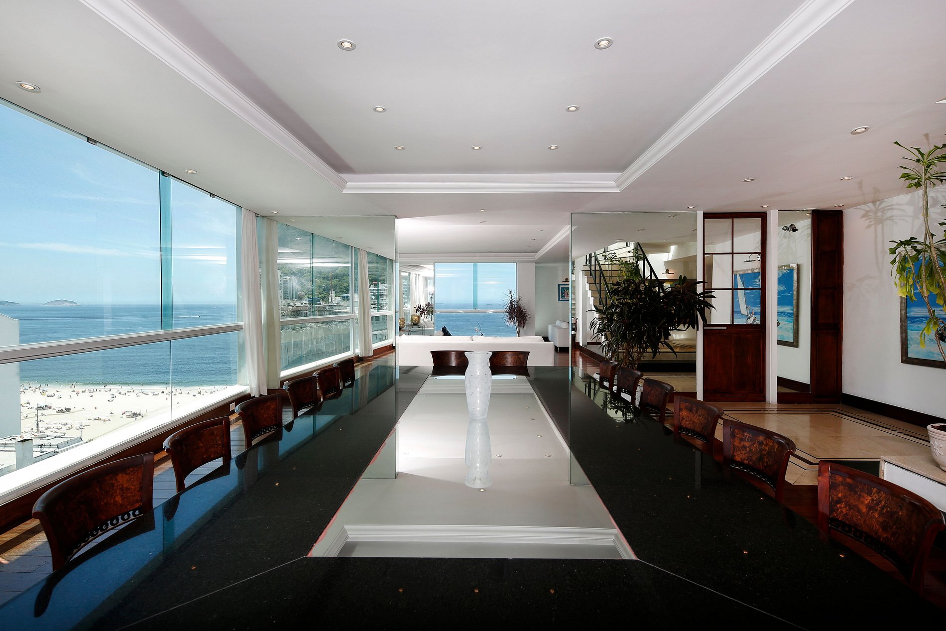Cet appartement est un des penthouses le plus exceptionnel de Rio de Janeiro. 1000 mètres carrés situé au dernier étage d'un immeuble situé face à la plage de Copacabana, à seulement 2 blocs du Copacabana Palace.