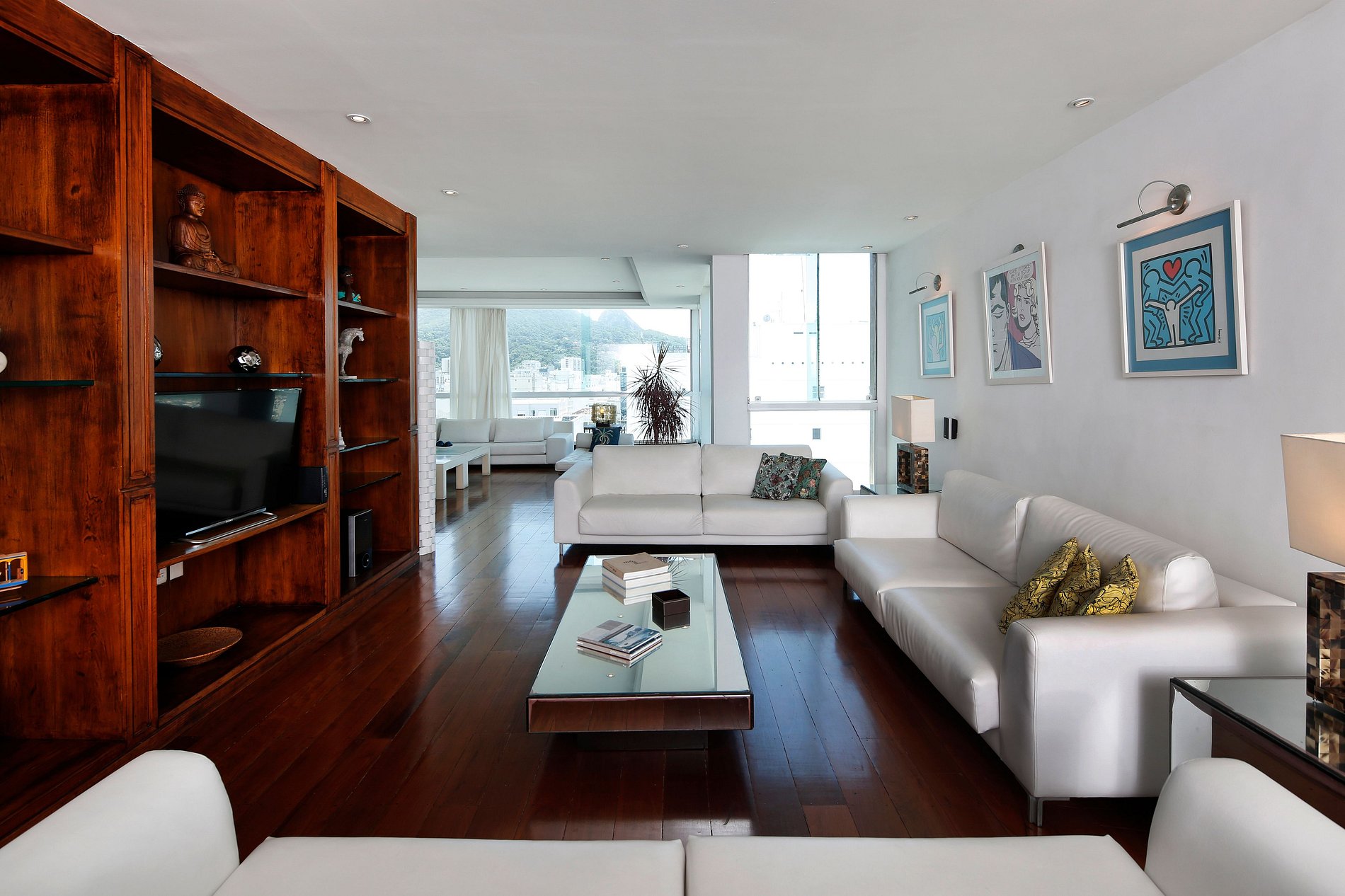 Il offre une magnifique terrasse avec une vue panoramique unique sur la plage de Copacabana, le Christ Rédempteur et le Pain de Sucre. L'appartement comprend 2 salles à manger, une plus formelle pour 20 courverts et une plus conviviale avec des meubles dessinés par Philippe Starck pour 10 personnes.