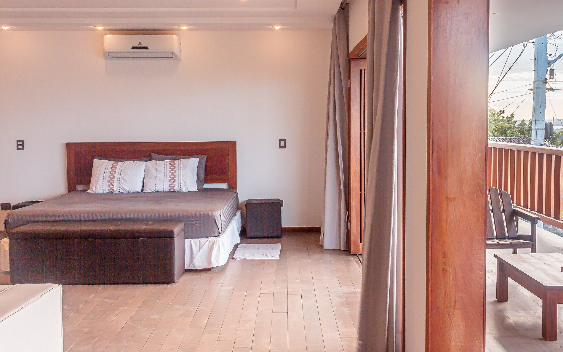 La Master Suite occupe tout le premier étage, elle possède un coin salon avec SmartTV, canapé et fauteuils, sa propre terrasse, 2 dressings, une grande salle de bain. Vous pouvez accéder au rooftop de la villa et profiter d’un incroyable coucher de soleil sur le lac.