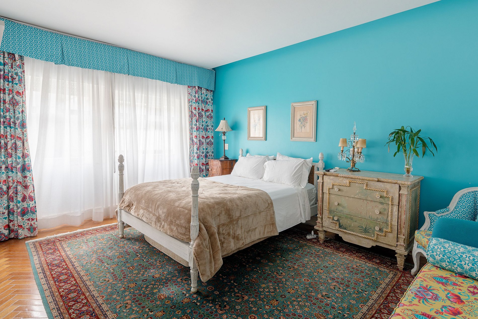 Au premier étage grand salon, salle à manger et cuisine équipée ouverts sur terrasse avec vue mer imprenable. Le style atypique de cet appartement lui donne un charme particulier. Au dernier étage un grand salon télé, une salle à manger et 4 chambres, dont 1 suite de 120m2 avec dressing, bureau, salon et salle de bain. Toutes les salles de bain sont en marbre blanc. TV écran plat, climatisation, portier 24h/24, parking, service de ménage quotidien et petit déjeuner sont inclus.