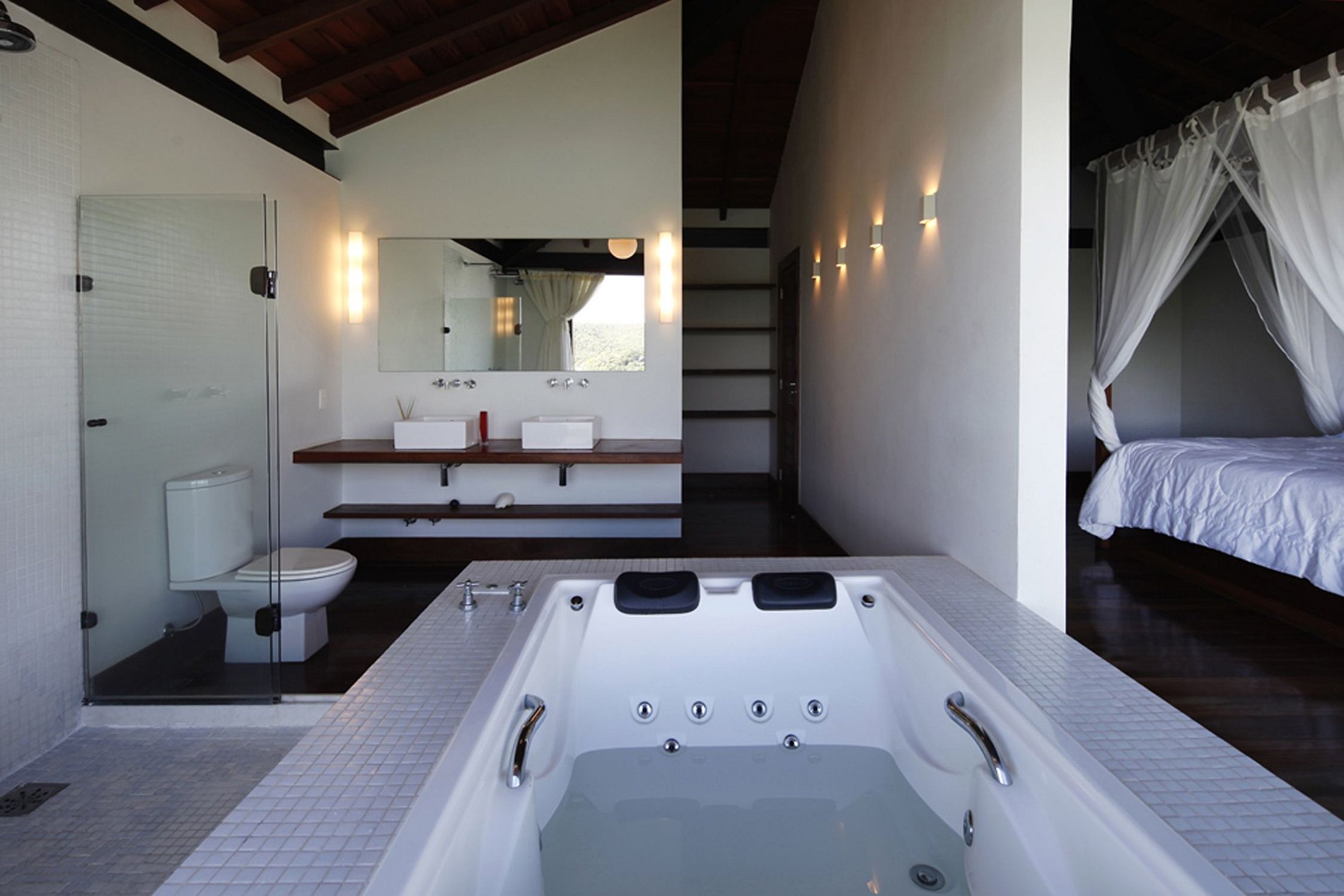 Chacune des cinq suites sont équipées de grands lits confortables, qui conviennent pour un groupe de couples. Toutes les suites sont climatisées et disposent d'un balcon privé. La suite principale dispose également d'un bain à remous et un grand balcon avec vue sur la salle de séjour baía.A insaisissable crée un environnement ouvert et spacieux pour se détendre. Il se fond dans la salle à manger et cuisine, dont chacun est bien équipé pour toute situation, des en-cas légers aux dîners somptueux.