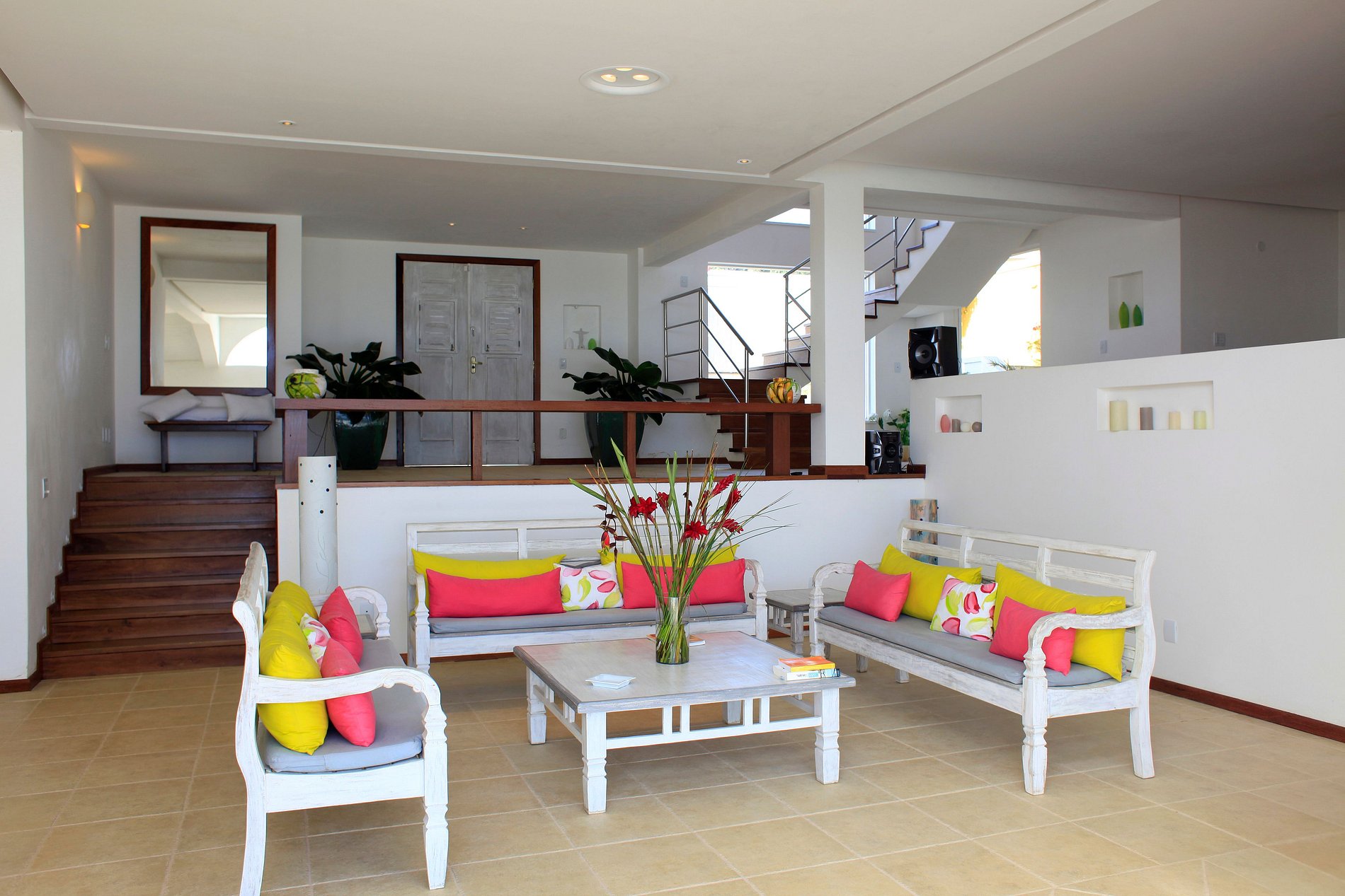 A encore une salle de séjour ouverte est le point de rencontre de cette simple villa de plage, mais belle, grande salle à manger, près de la fraîcheur la piscine et les brises de soirées agréables. La zone barbecue traditionnelle brésilienne sur la propriété, impressionnant!