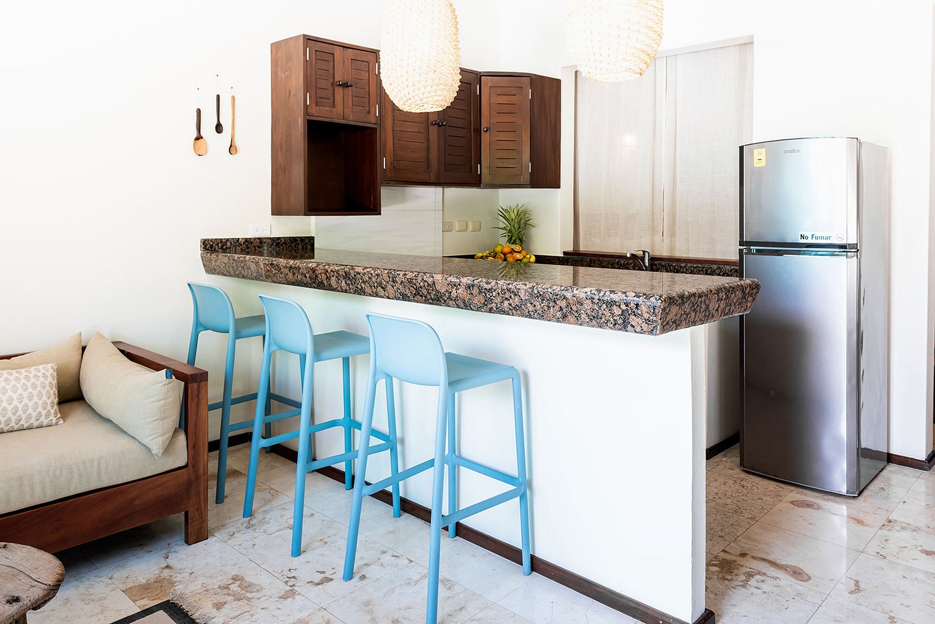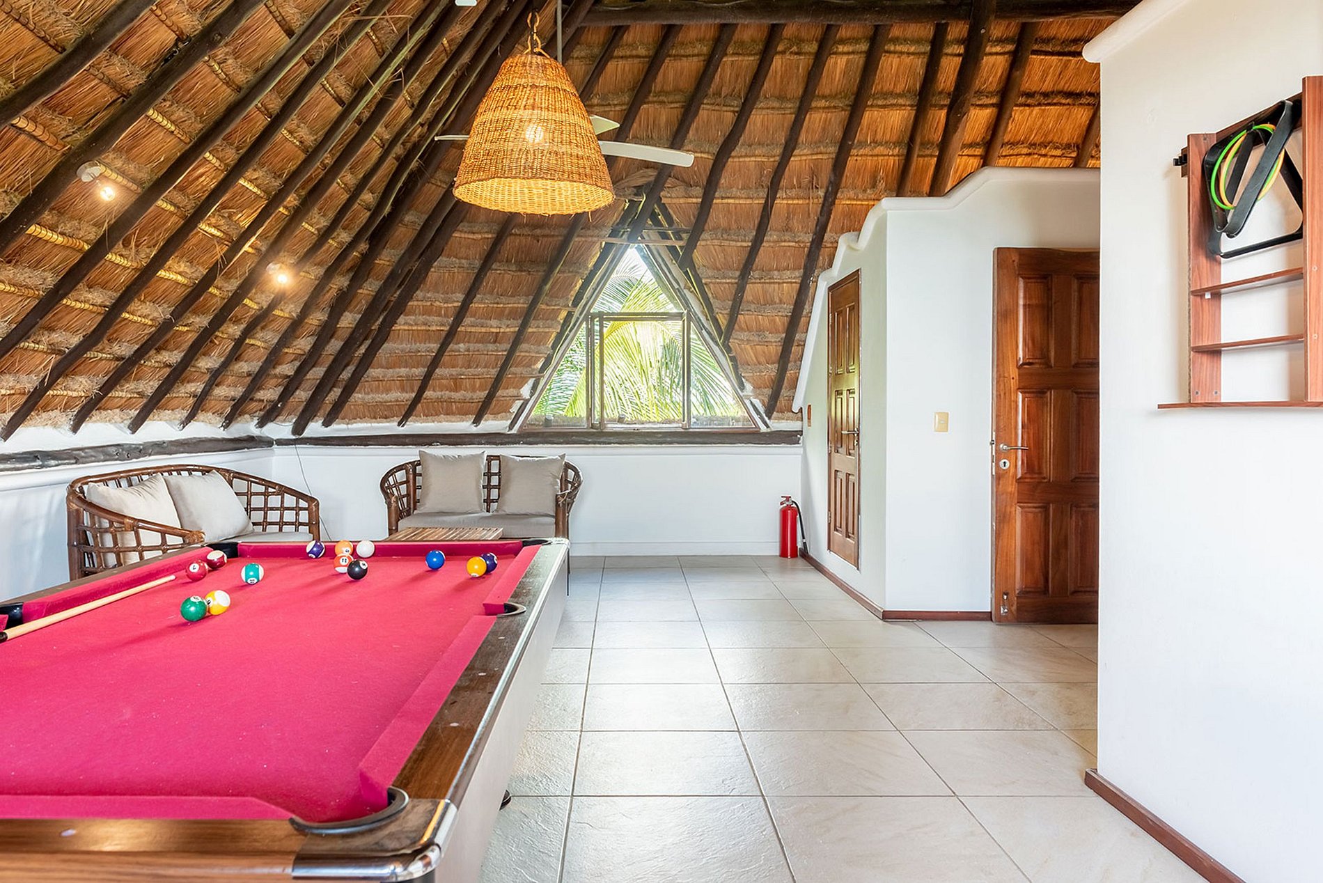 Au dernier étage, sous la palapa, vous retrouverez une authentique ambiance caribéenne. Une spacieuse chambre king-size avec une salle de bain attenante vous attend, offrant une terrasse privée avec une vue pittoresque sur la baie.