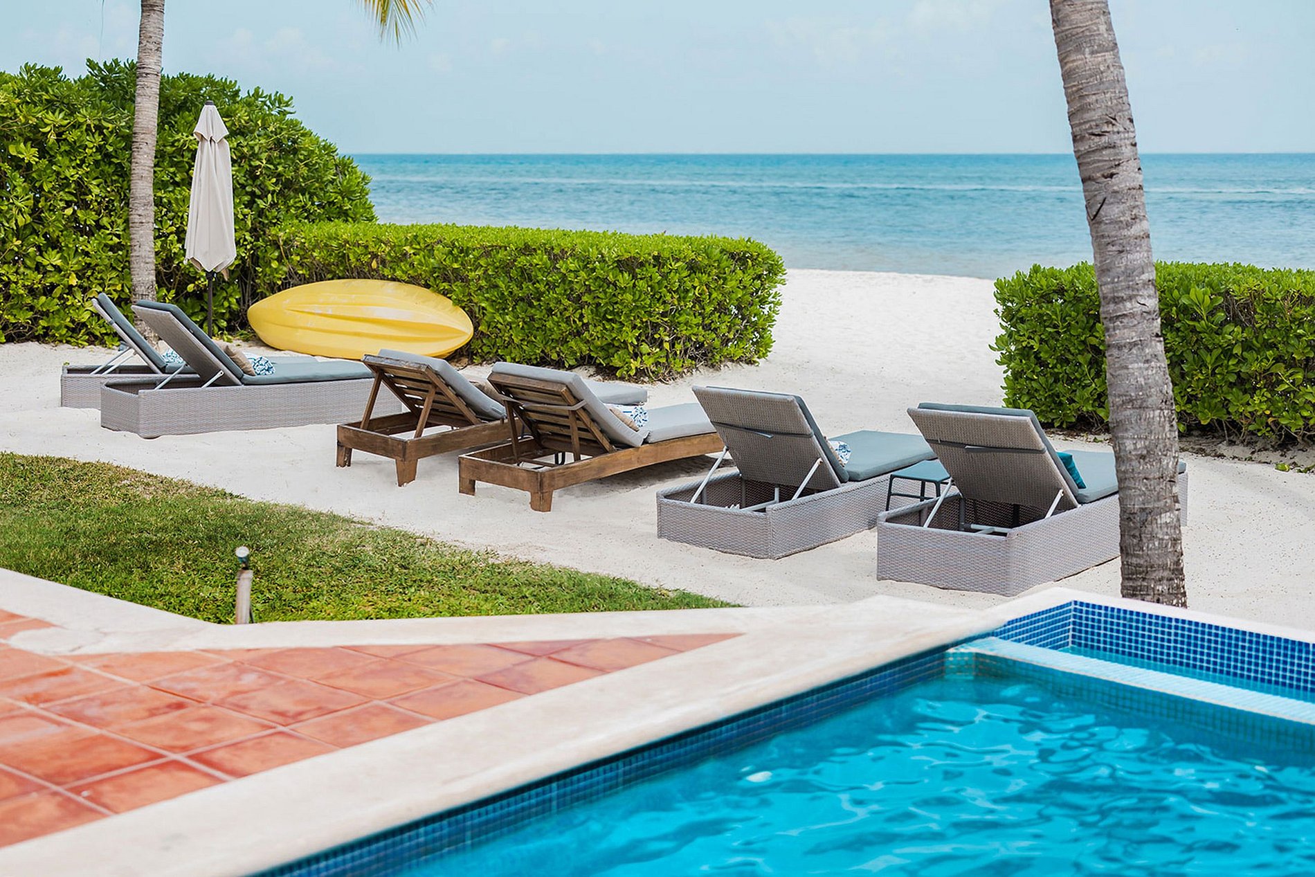 Les deux maisons indépendantes sont soigneusement conçues pour offrir une intimité tout en étant suffisamment proches pour un seul groupe voyageant ensemble. Combinés, ils offrent un hébergement pouvant accueillir jusqu'à 22 personnes, avec 9 chambres parfaitement adaptées pour les rassemblements et profiter du cadre en bord de mer. Le point culminant de l'espace extérieur est l'accès privilégié à la spectaculaire plage de sable blanc, complétée par des cabanes ornées de chaises longues et la présence de deux piscines accueillantes.