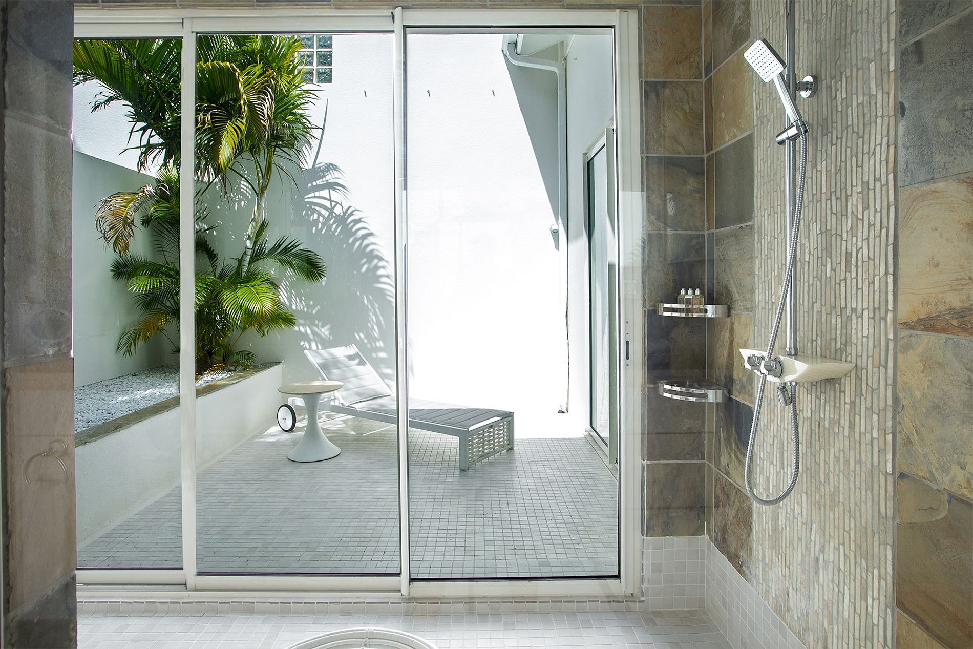 Les six chambres donnent sur l’océan et disposent toutes d’une salle de bain privée, d’un lit king-size, d’une télévision, d’un coffre-fort et du Wi-Fi. Trois sont des suites principales : l’une avec terrasse et bain à remous ; une autre avec douche suspendue au-dessus des falaises et baignoire circulaire ; et une troisième avec lit à baldaquin et vue directe sur la mer. Chaque salle de bain est pensée comme un espace spa avec des finitions élégantes.