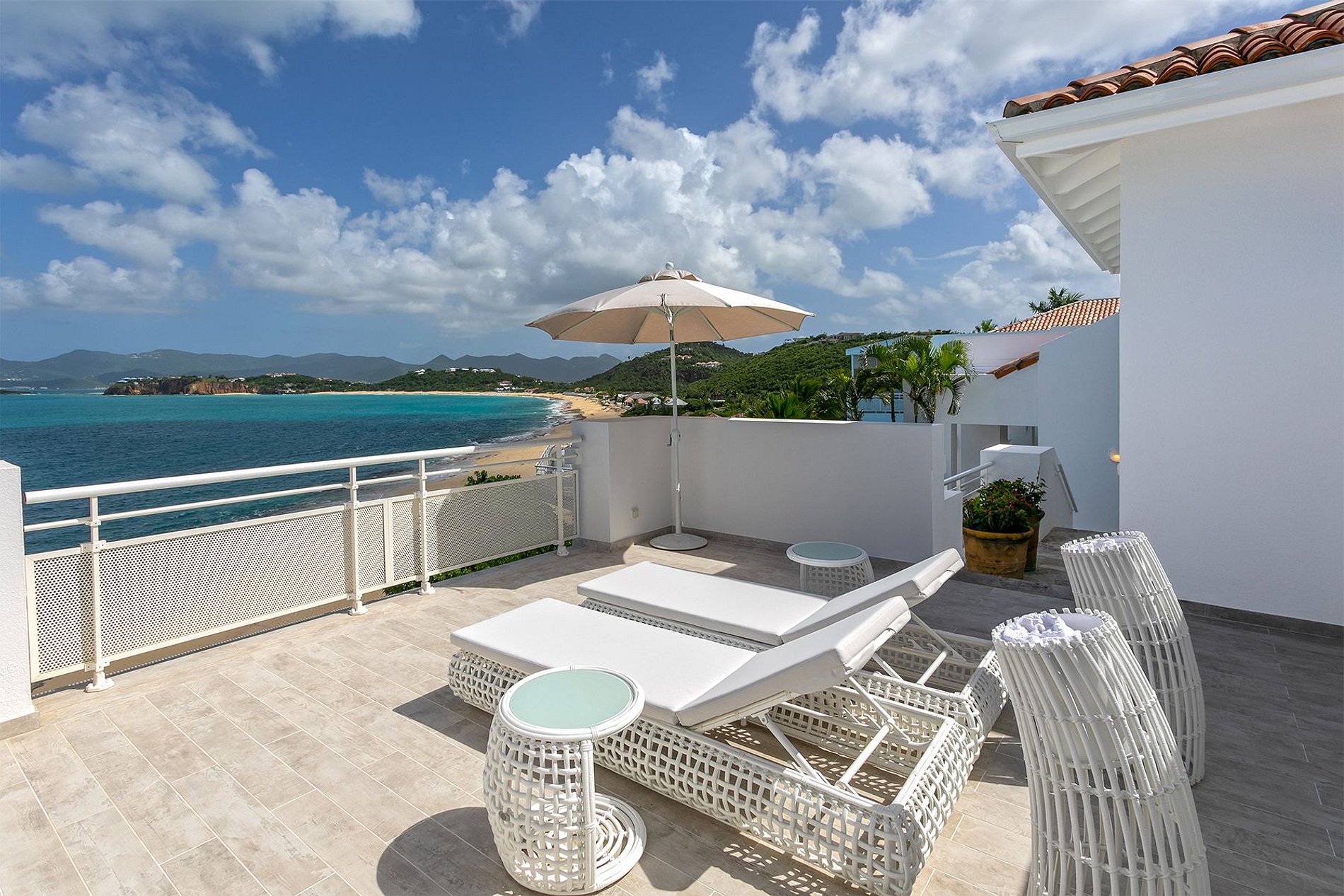 À l’extrémité de la plage de Baie Rouge, cette villa exceptionnelle de six chambres offre une expérience unique en bord de mer répartie sur trois niveaux en cascade. Avec deux piscines, des vues panoramiques, un spa et un personnel complet, c’est un havre de paix alliant élégance méditerranéenne et luxe caribéen contemporain.