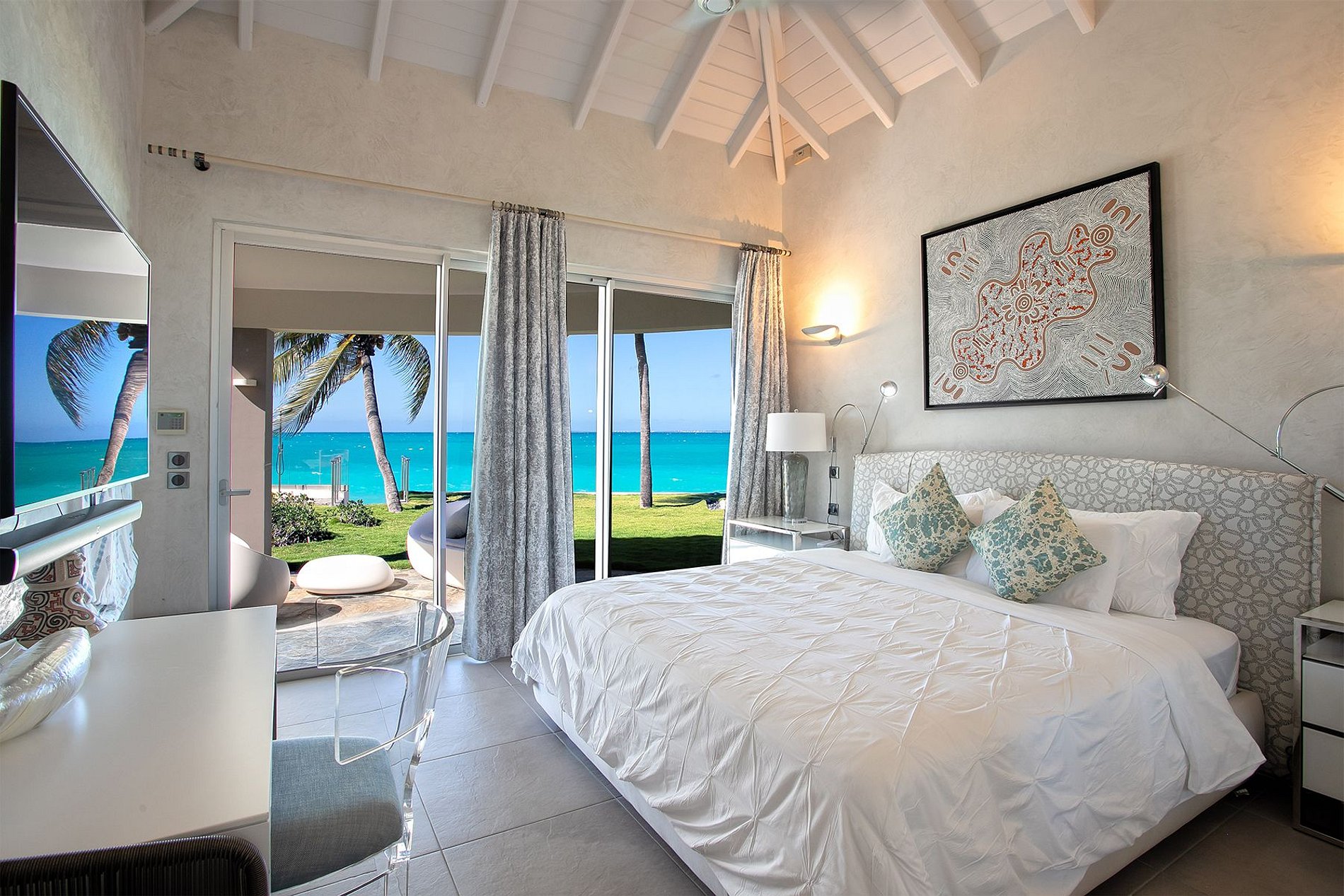 Les intérieurs de la villa allient élégance et confort, avec une vue imprenable sur la mer depuis presque toutes les pièces. Les espaces de vie ouverts mènent à une cuisine gastronomique entièrement équipée. Les hôtes peuvent se détendre dans une salle de cinéma privée, jouer au billard ou profiter du bruit des vagues depuis les cabanes ombragées et la vaste terrasse face à la mer.