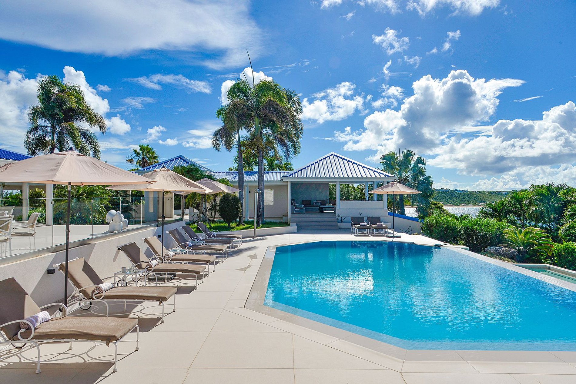 Surplombant Baie Rouge Beach depuis une position élevée, cette villa de cinq chambres offre une vue panoramique sur la mer des Caraïbes dans un cadre calme et élégant, parfait pour les familles ou groupes d’amis. Entourée de terrasses, jardins et d’une superbe piscine à débordement, la maison offre une fluidité naturelle entre intérieur et extérieur.