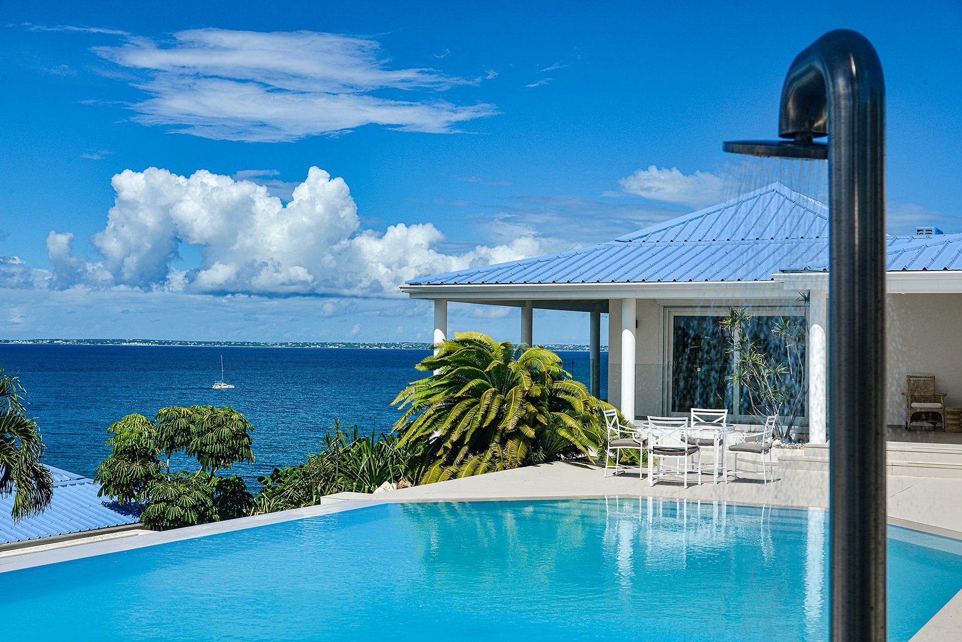 Surplombant Baie Rouge Beach depuis une position élevée, cette villa de cinq chambres offre une vue panoramique sur la mer des Caraïbes dans un cadre calme et élégant, parfait pour les familles ou groupes d’amis. Entourée de terrasses, jardins et d’une superbe piscine à débordement, la maison offre une fluidité naturelle entre intérieur et extérieur.