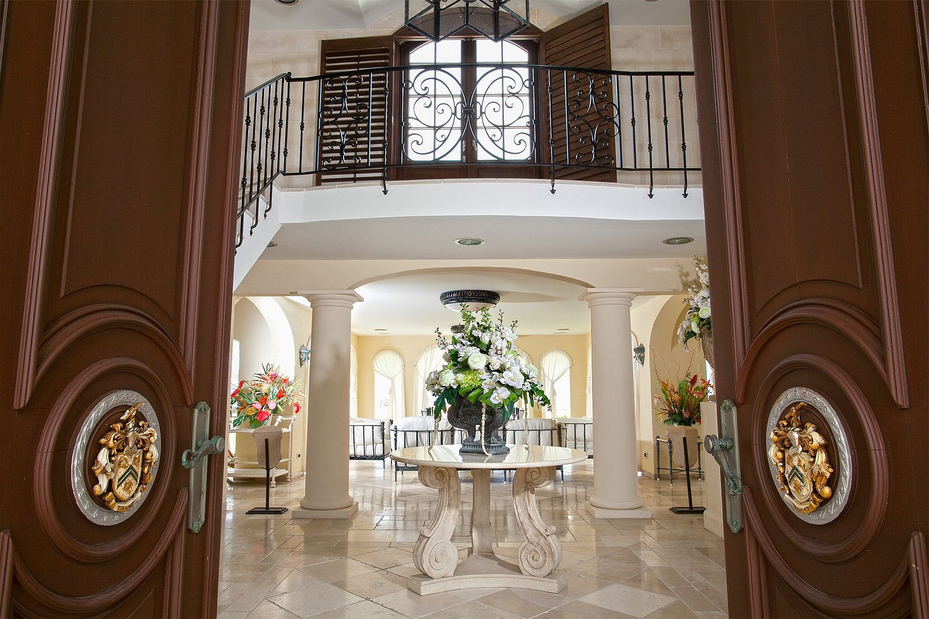 La villa principale dispose de six chambres avec lits king-size et salles de bains privatives, dont une suite parentale sur deux niveaux avec jacuzzi, deux balcons et vue sur l’océan. Les espaces communs comprennent un salon, une salle à manger formelle, un coin repas extérieur, une salle média et une cuisine entièrement équipée. La maison côté jardin comprend quatre chambres supplémentaires, un salon chaleureux, une salle à manger et une cuisine professionnelle.