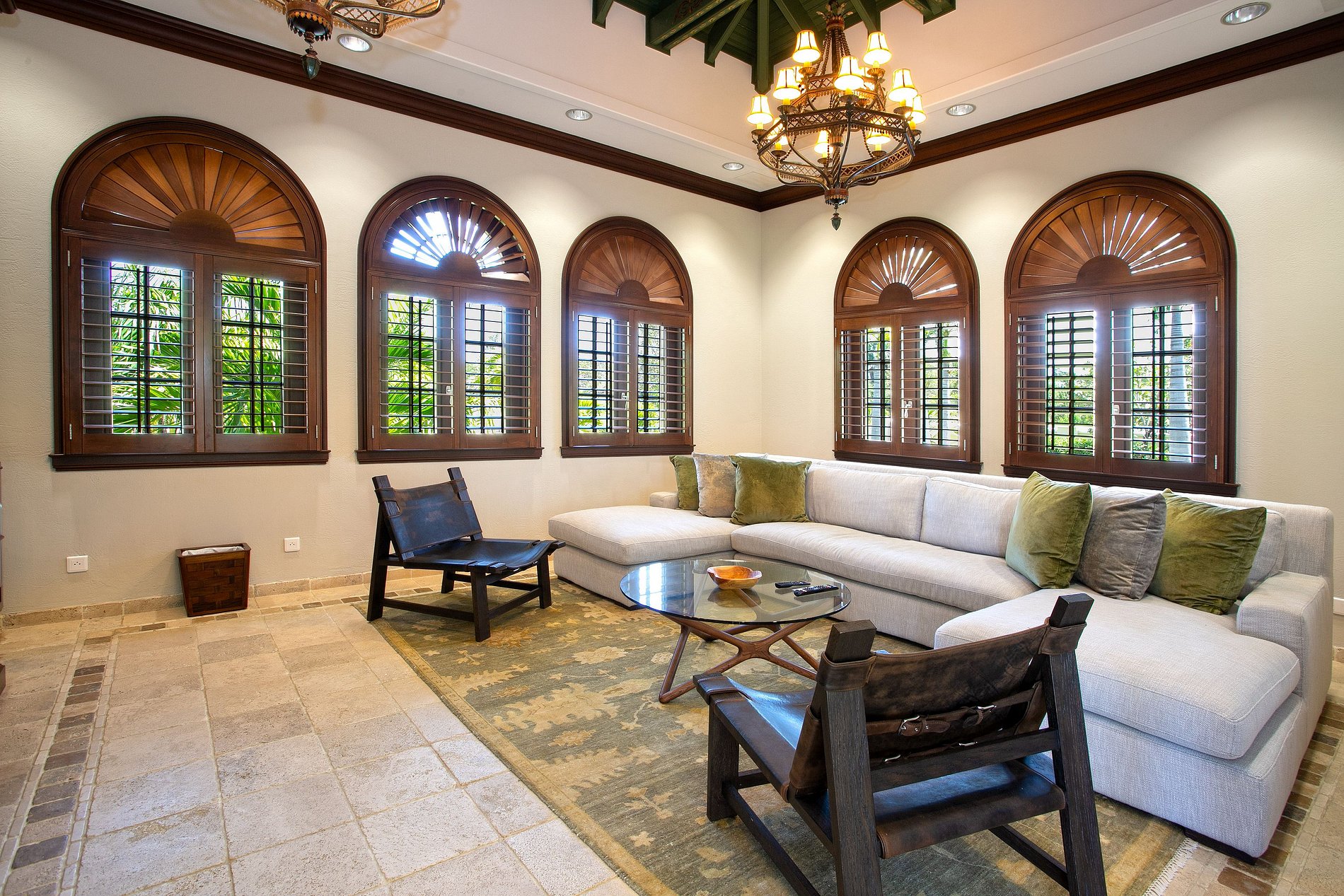 À l’extérieur, la villa propose une piscine chauffée, un jacuzzi, un court de tennis et un gazebo face à la mer. Un bar couvert avec espace repas et billard permet de recevoir aisément. Les amateurs de sport peuvent profiter d’une salle de sport climatisée ou en plein air.