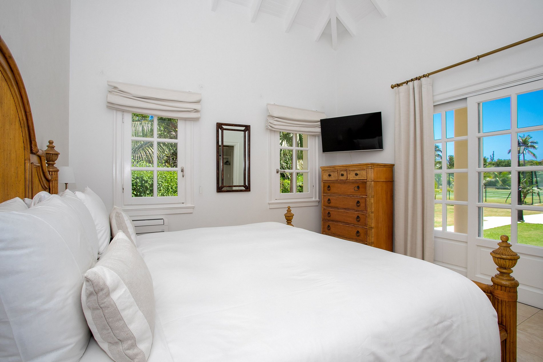 La villa principale dispose de six chambres avec lits king-size et salles de bains privatives, dont une suite parentale sur deux niveaux avec jacuzzi, deux balcons et vue sur l’océan. Les espaces communs comprennent un salon, une salle à manger formelle, un coin repas extérieur, une salle média et une cuisine entièrement équipée. La maison côté jardin comprend quatre chambres supplémentaires, un salon chaleureux, une salle à manger et une cuisine professionnelle.