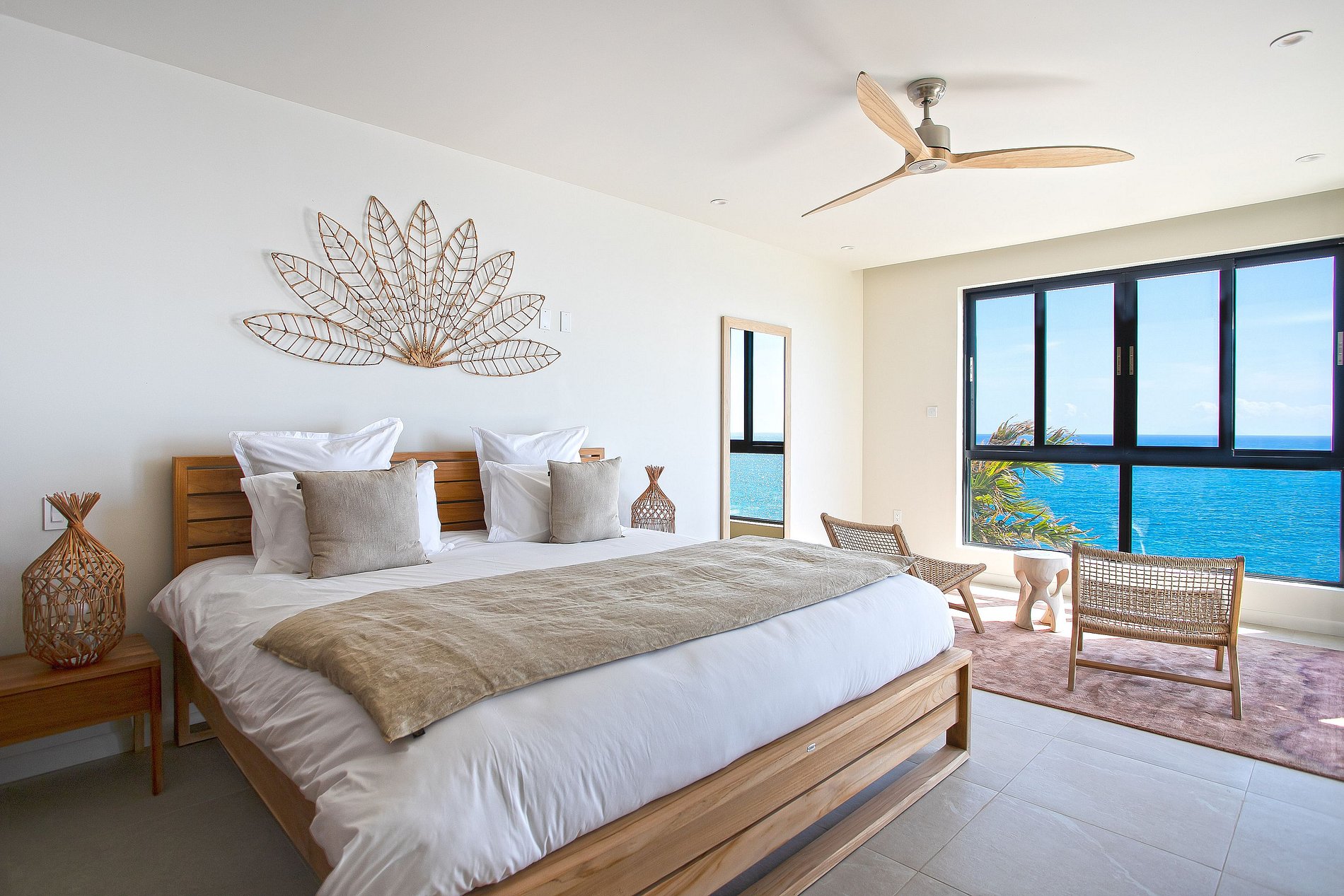 Les six chambres sont réparties sur trois étages et disposent toutes d’une salle de bain attenante, de douches à l’italienne, de la climatisation et d’un accès direct aux espaces extérieurs. La suite parentale comprend également une baignoire et une superbe vue sur la mer. La villa allie intimité, confort moderne et prestations haut de gamme dans l’un des coins les plus paisibles de l’île.