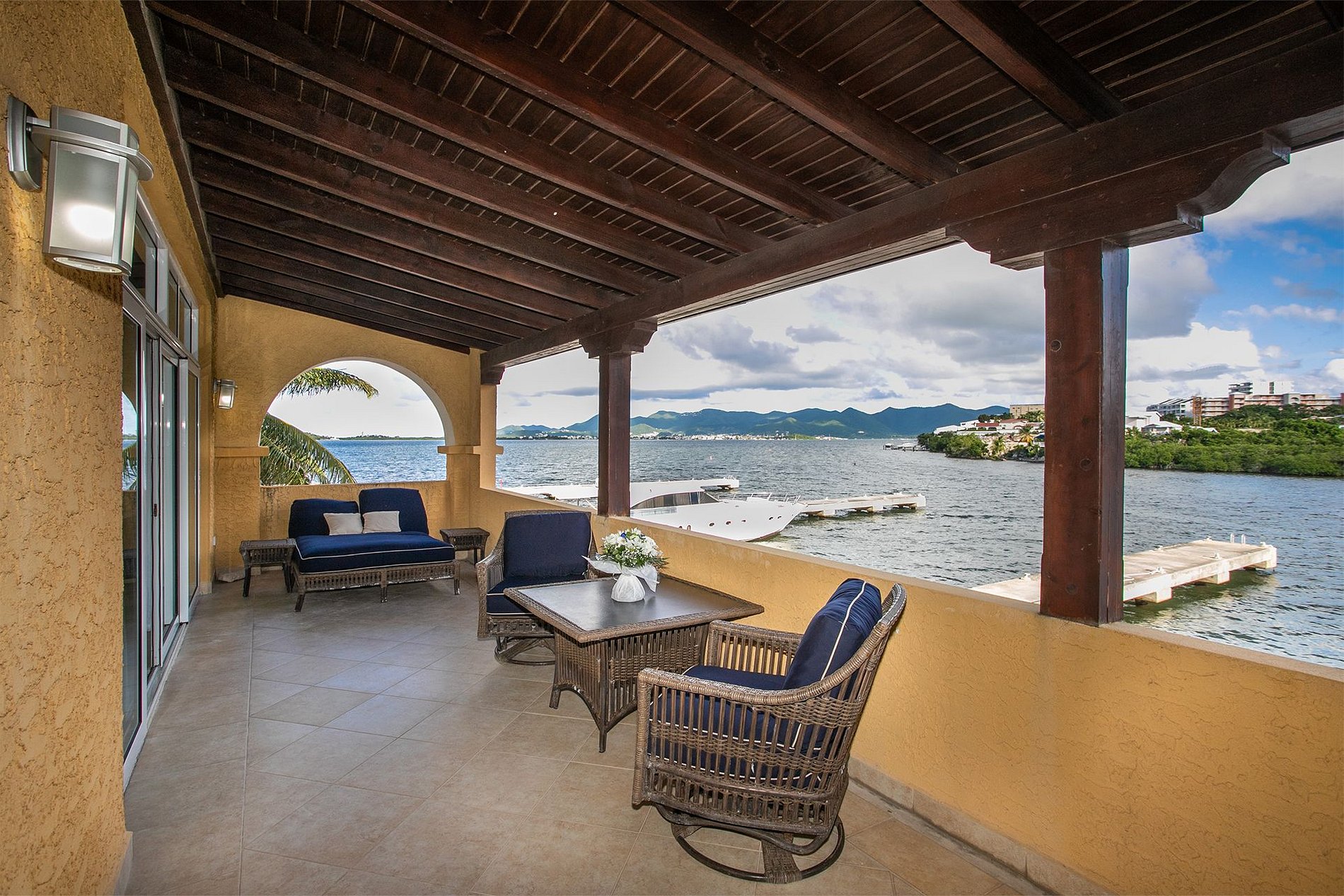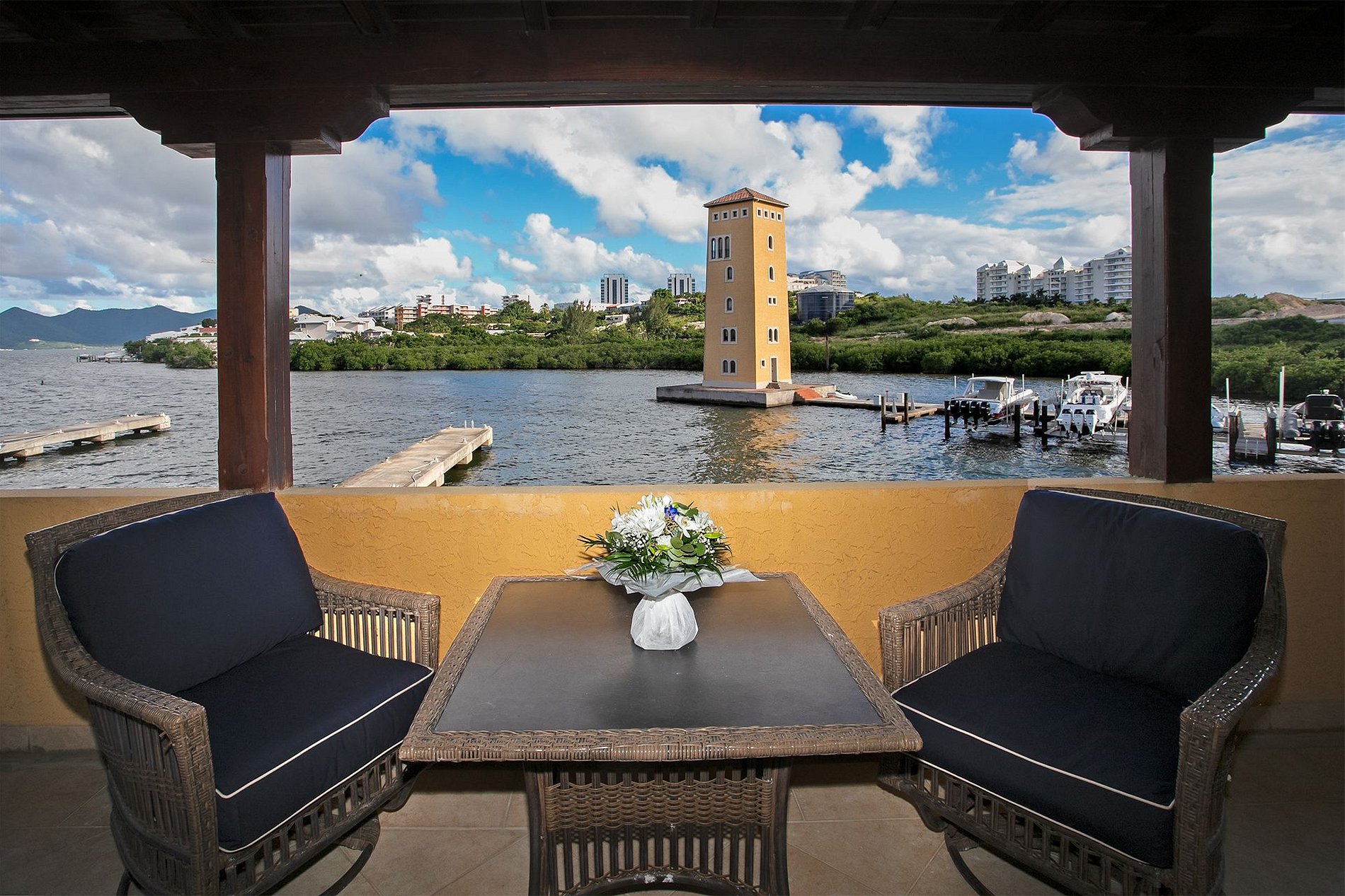 Cet appartement élégant est situé au dernier étage d’un immeuble de deux niveaux, avec vue sur la marina, le lagon et la mer des Caraïbes. Doté de deux chambres spacieuses et de trois terrasses au bord de l’eau, il offre confort, intimité et vues panoramiques sous tous les angles.