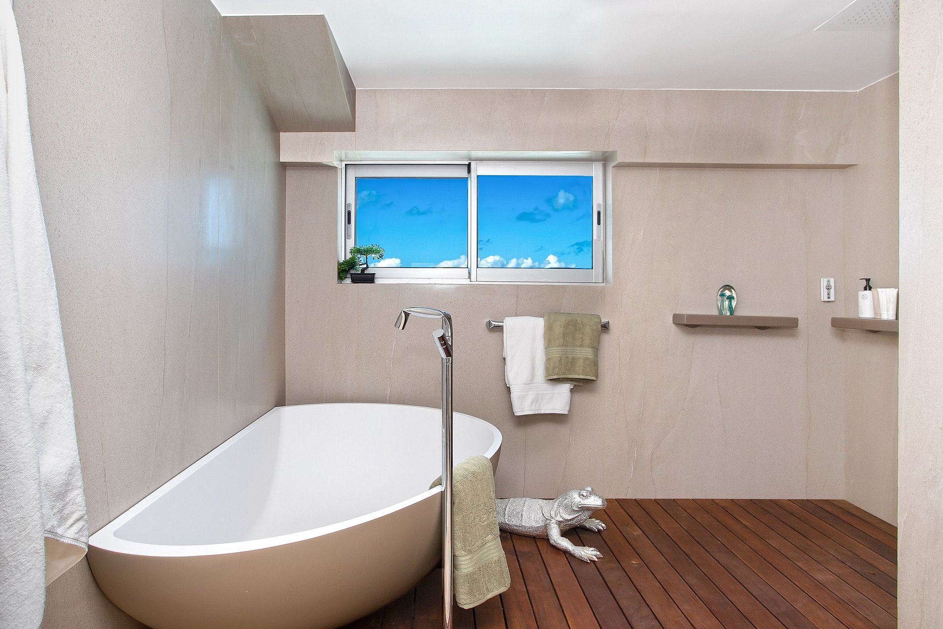 Un système audio Sonos équipe toutes les pièces. L’appartement comprend une cuisine moderne entièrement équipée, un salon confortable, et de généreux espaces repas, intérieurs et extérieurs. The Cliff offre une piscine à débordement, une piscine intérieure, un bassin pour enfants, une salle de sport, un espace yoga, un sauna, un hammam, un coin barbecue et des jardins apaisants.