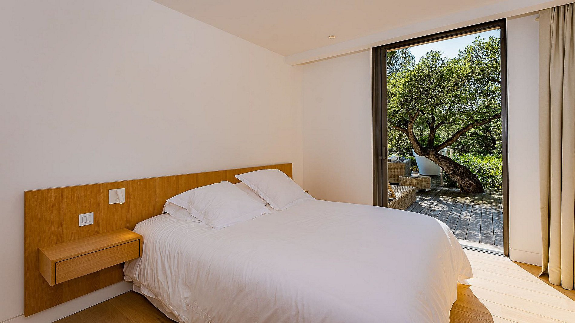 - Chambre n°5 : lit double (180cm), salle de douche, WC, dressing, terrasse avec accès direct piscine et vue mer.