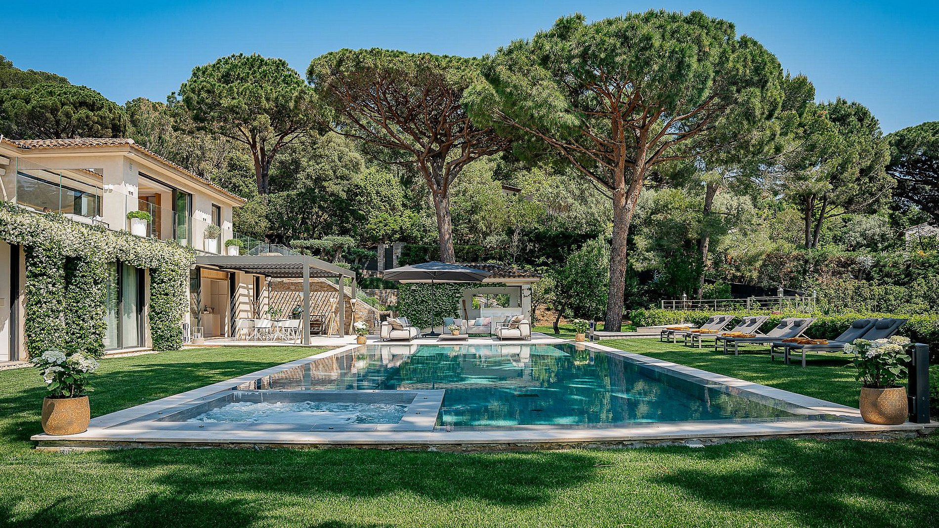 Cette villa prestigieuse est une véritable invitation à la détente et au luxe dans l’un des cadres les plus exclusifs de Saint-Tropez.