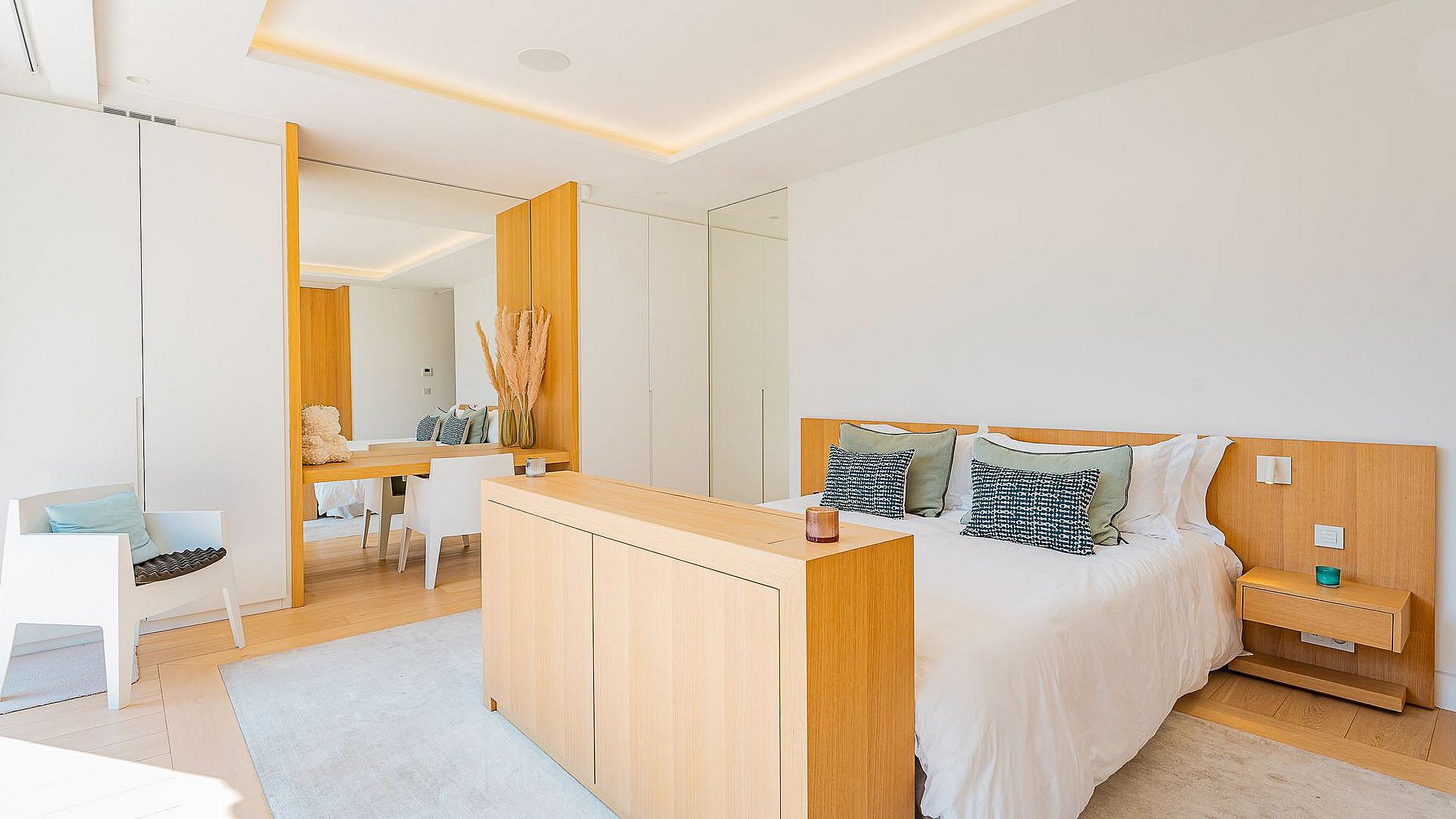 - Chambre n°6 (Master n°2) : lit double (180cm), salle de douche, WC, grand dressing, terrasse avec accès piscine et vue mer.