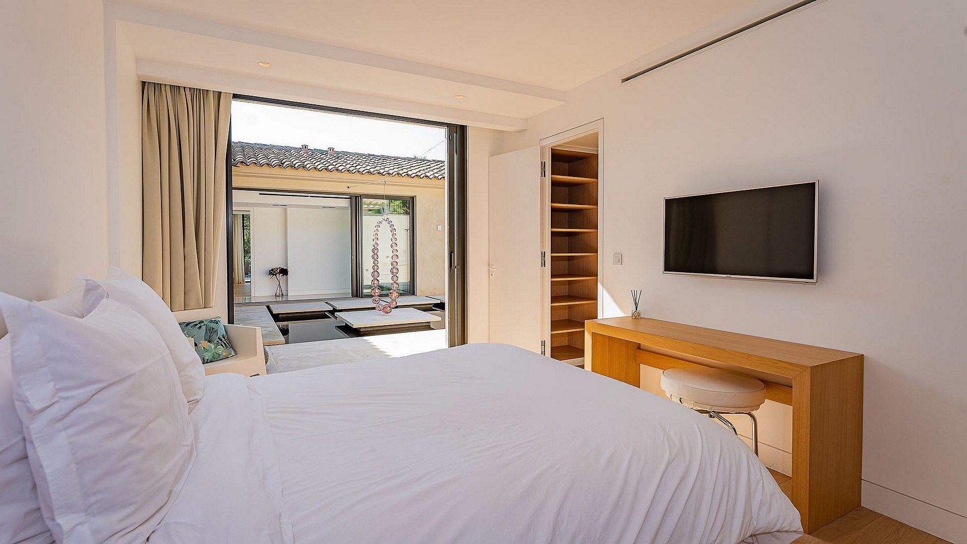 - Chambre n°6 (Master n°2) : lit double (180cm), salle de douche, WC, grand dressing, terrasse avec accès piscine et vue mer.