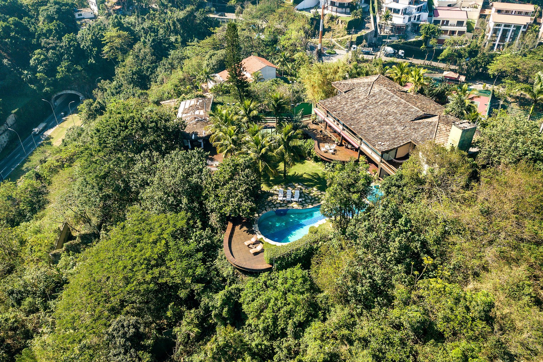 Ce villa exquis, dans une nature magnifique, dans l'exclusive Joatinga, occupe une superficie de 1600 m² sur un terrain d'environ 3000 m² avec une vue imprenable sur Sao Conrado, la plage de Barra et le Pain de sucre. Il est à seulement 100 mètres de la charmante plage de Rio de Janeiro, Joatinga Beach.