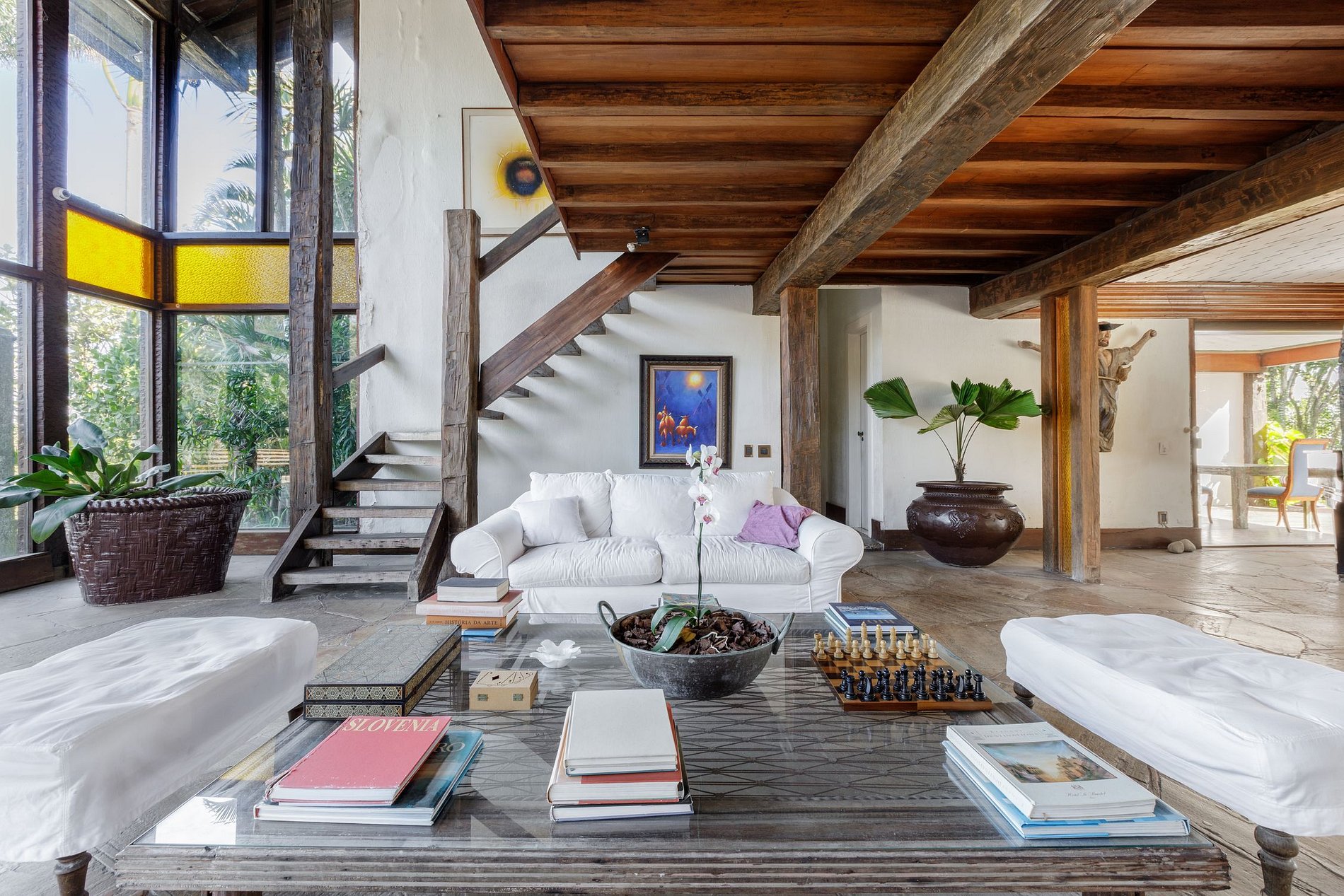 Ce villa exquis, dans une nature magnifique, dans l'exclusive Joatinga, occupe une superficie de 1600 m² sur un terrain d'environ 3000 m² avec une vue imprenable sur Sao Conrado, la plage de Barra et le Pain de sucre. Il est à seulement 100 mètres de la charmante plage de Rio de Janeiro, Joatinga Beach.