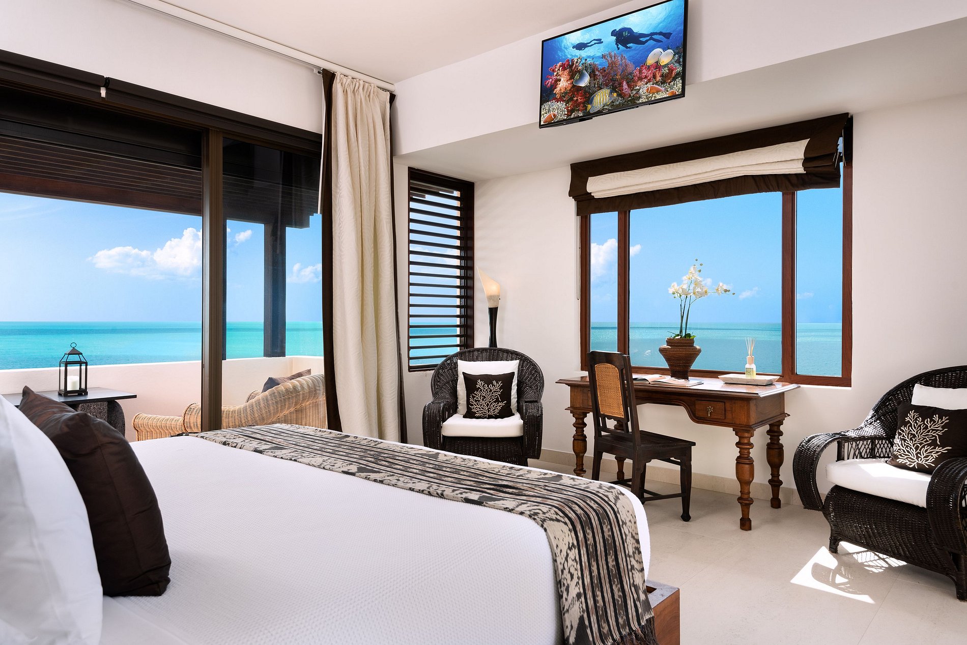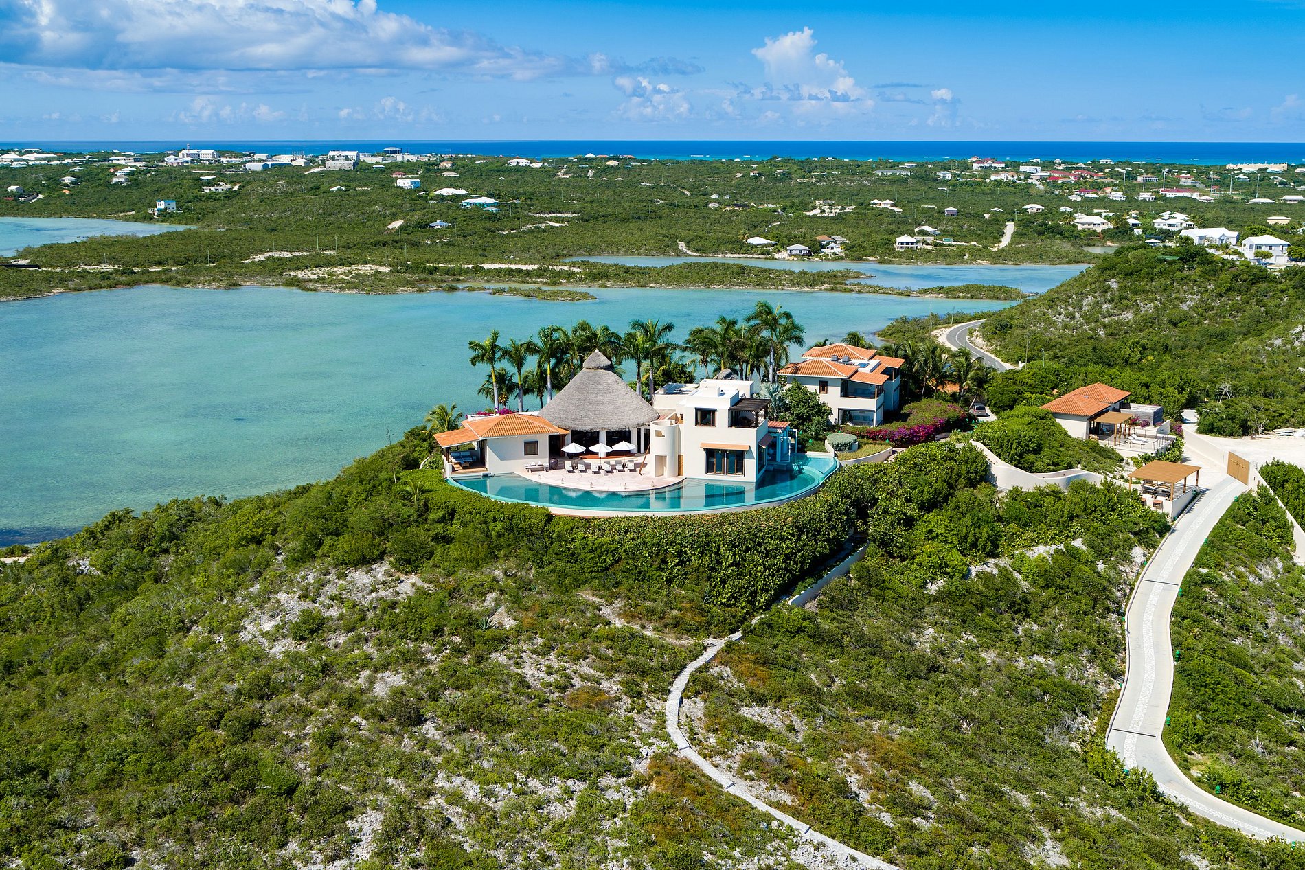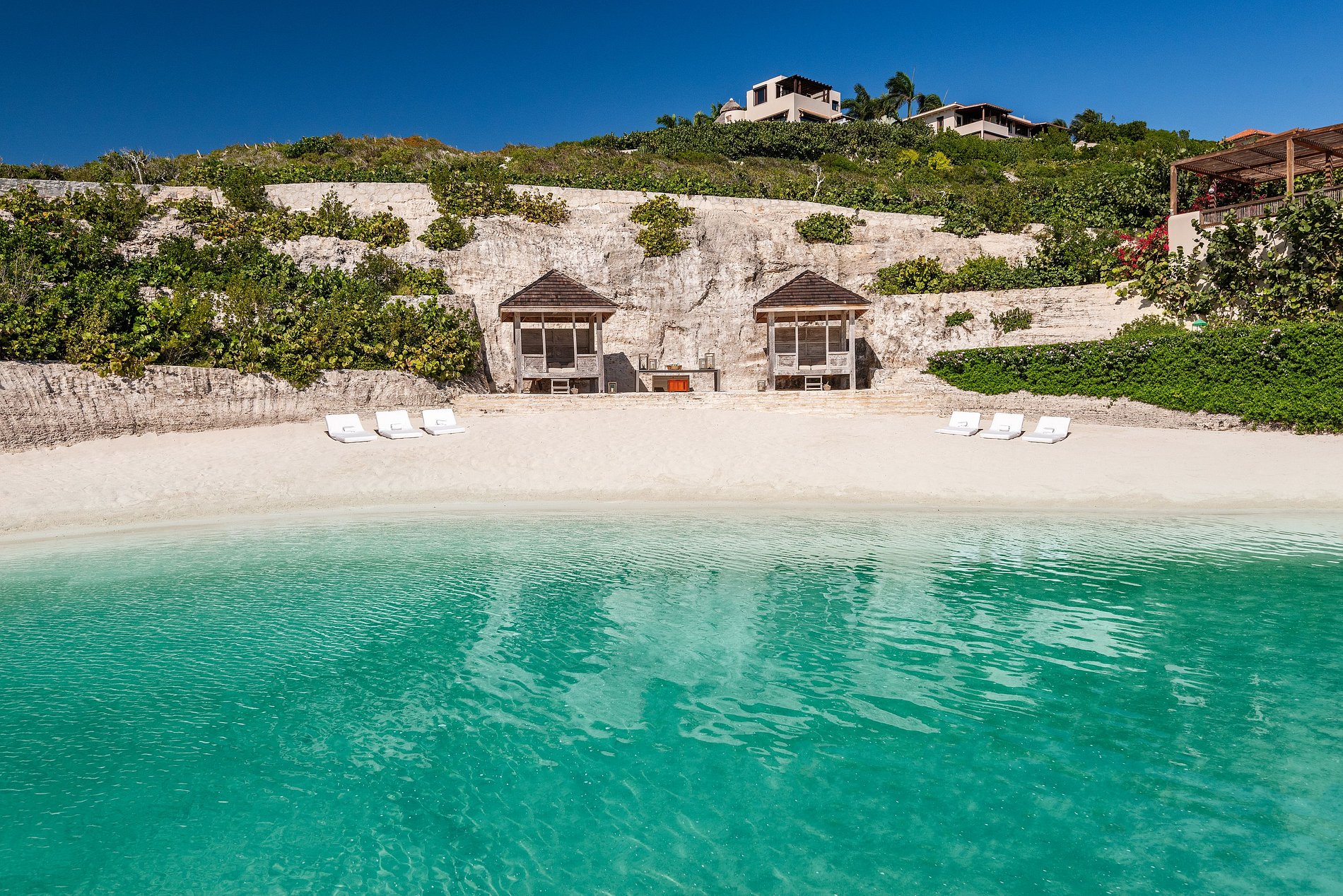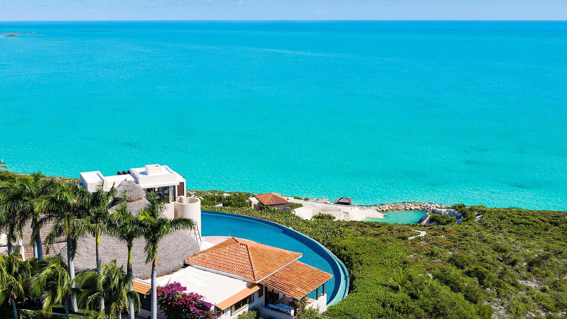 Située au sommet d’une colline spectaculaire sur la côte sud de Providenciales, cette villa de six chambres offre une vue panoramique de 270° sur la mer et une intimité totale. Entourée de jardins tropicaux luxuriants et dotée de sa propre crique et plage privée, c’est l’une des rares propriétés des îles Turques-et-Caïques avec un accès exclusif au front de mer.