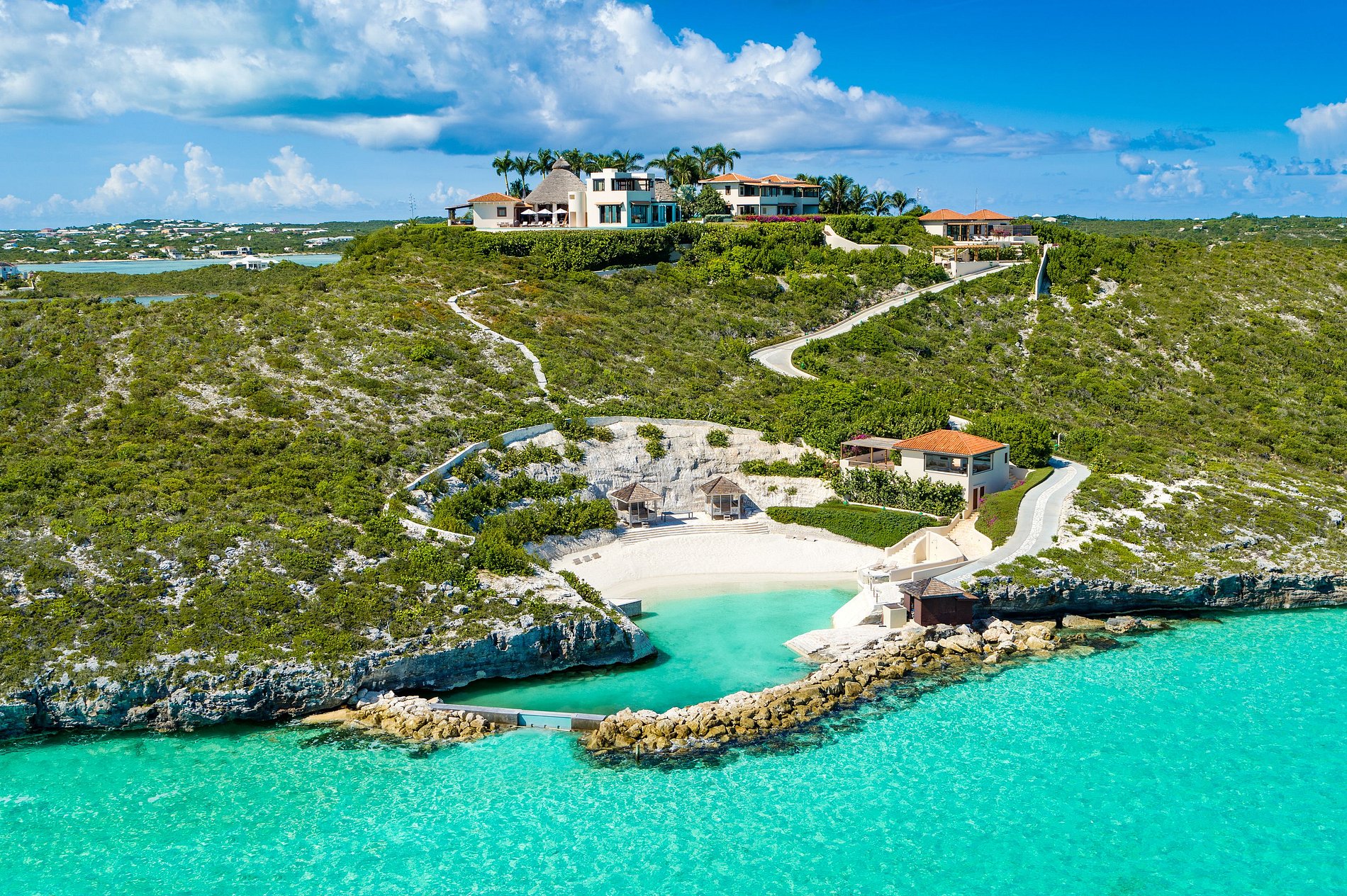 Située au sommet d’une colline spectaculaire sur la côte sud de Providenciales, cette villa de six chambres offre une vue panoramique de 270° sur la mer et une intimité totale. Entourée de jardins tropicaux luxuriants et dotée de sa propre crique et plage privée, c’est l’une des rares propriétés des îles Turques-et-Caïques avec un accès exclusif au front de mer.