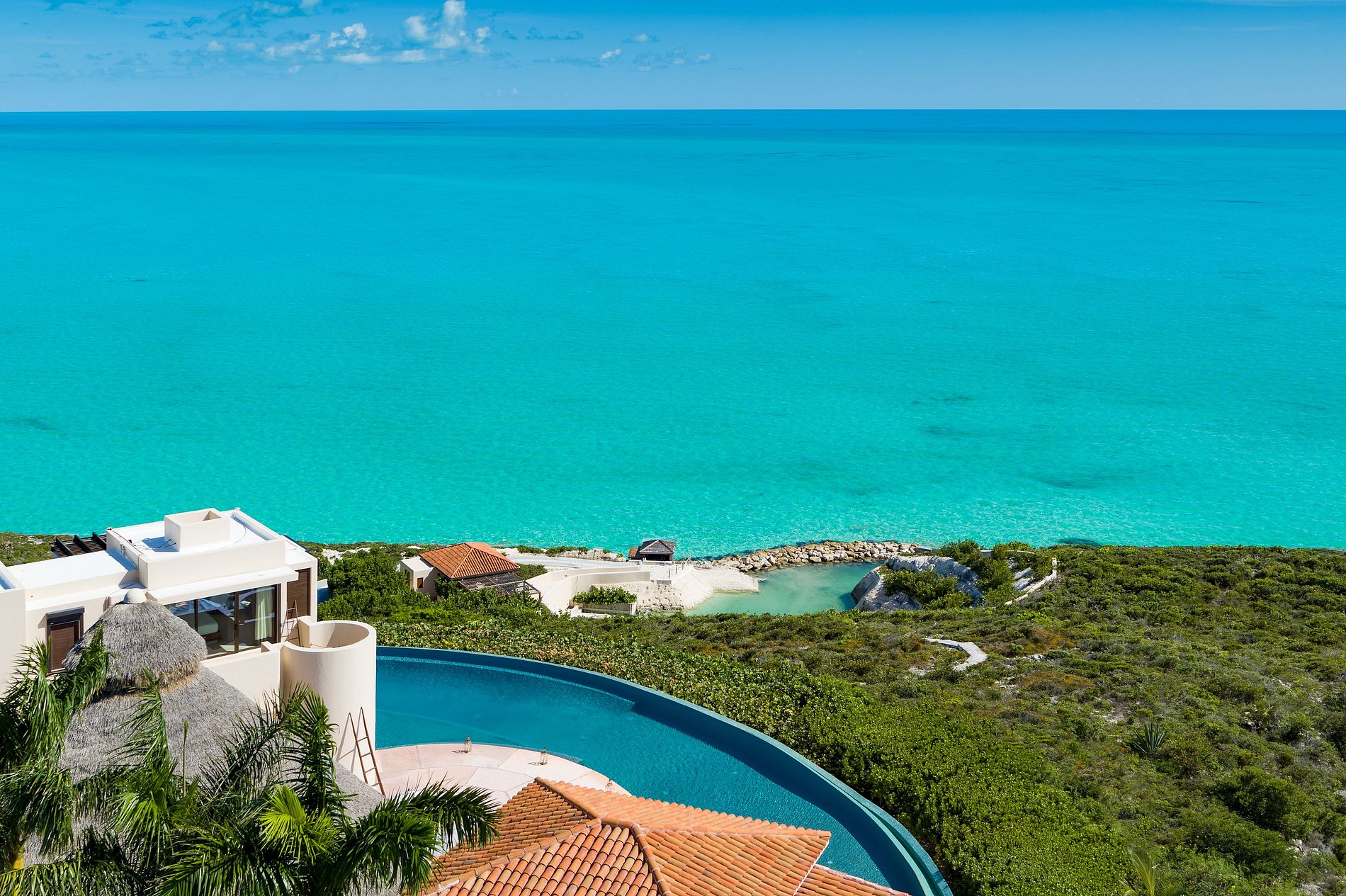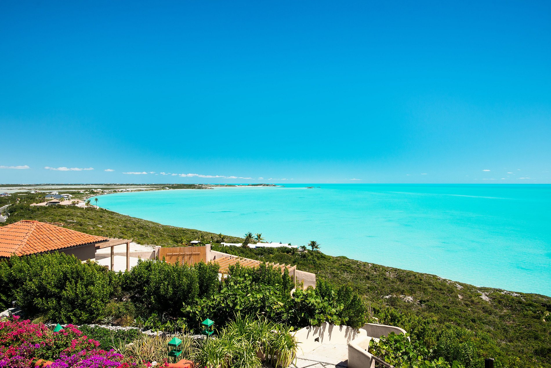 Située au sommet d’une colline spectaculaire sur la côte sud de Providenciales, cette villa de six chambres offre une vue panoramique de 270° sur la mer et une intimité totale. Entourée de jardins tropicaux luxuriants et dotée de sa propre crique et plage privée, c’est l’une des rares propriétés des îles Turques-et-Caïques avec un accès exclusif au front de mer.