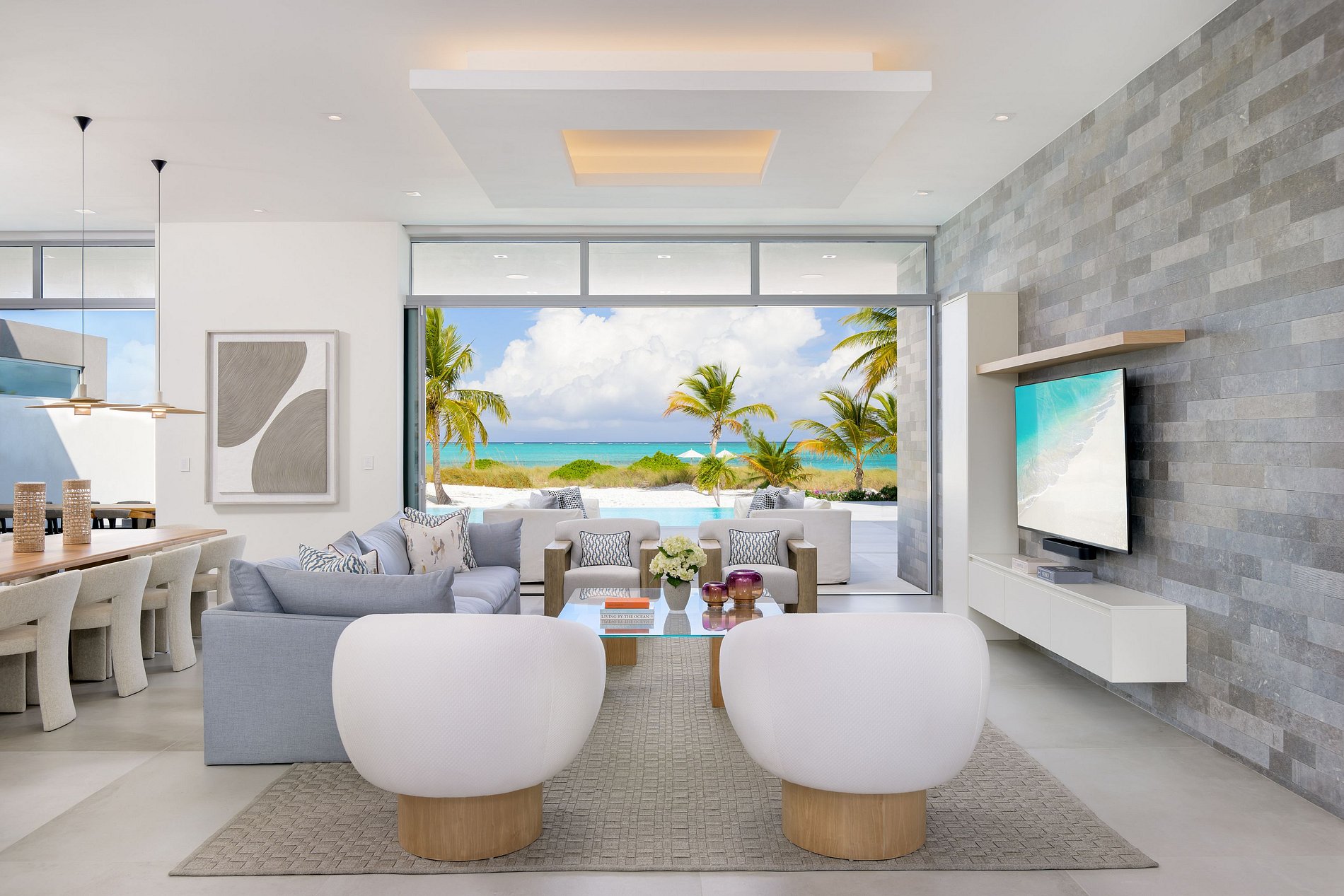 Conçue selon les normes les plus élevées, elle offre des espaces ouverts, de hauts plafonds, une lumière naturelle abondante et des finitions raffinées en pierre, granit et quartz. De grandes baies vitrées encadrent la mer turquoise, tandis que le balcon en verre et la terrasse au bord de la piscine offrent un cadre idéal pour se détendre face à la beauté de Grace Bay.