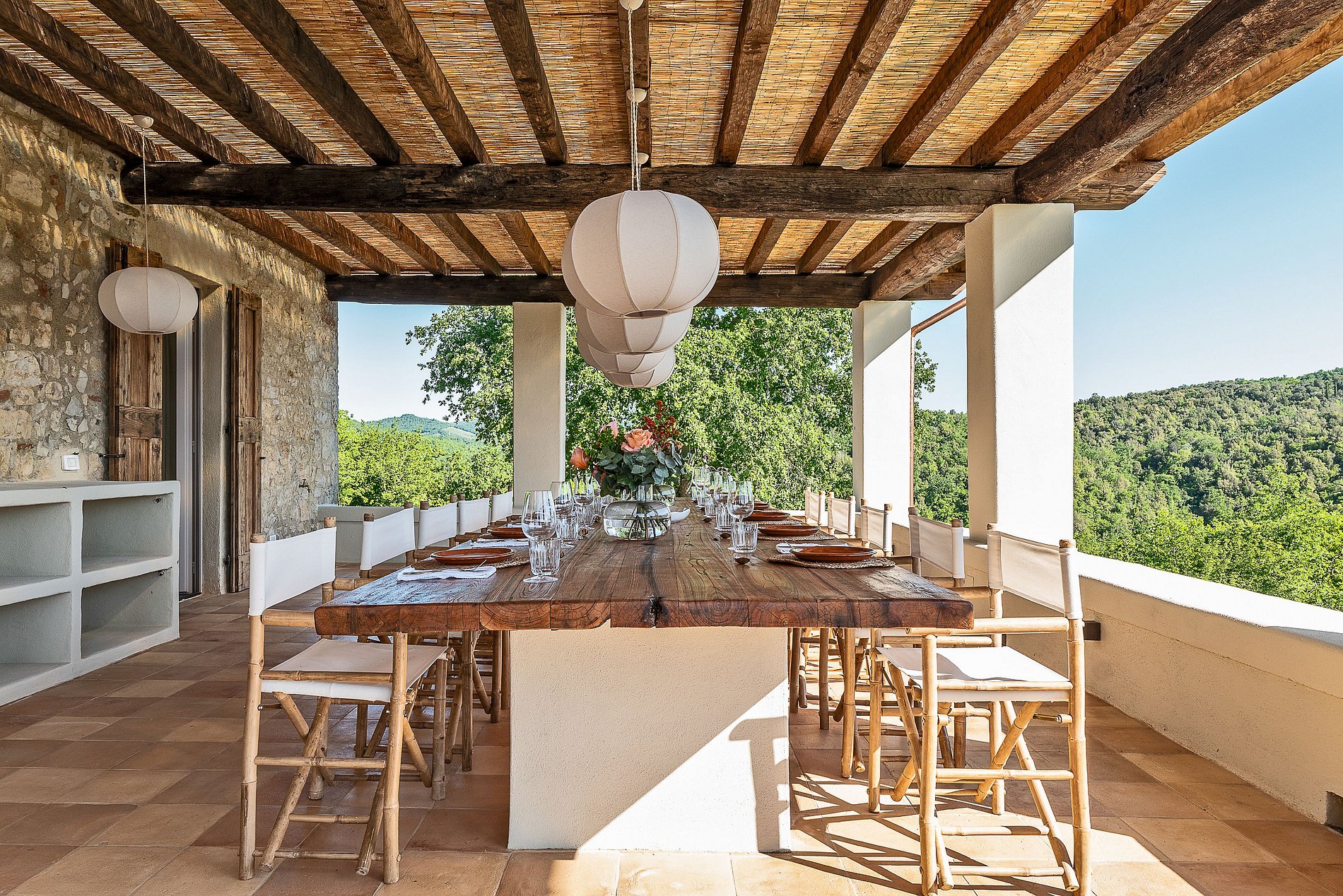 Nichée dans une vallée secrète et spectaculaire au cœur du Chianti, cette villa magnifiquement restaurée incarne l’alliance parfaite entre charme traditionnel et raffinement contemporain. Ancien refuge d’écrivain et décor de tournage pour une série de la BBC, la propriété a été transformée avec passion par un architecte italien et son épouse australienne, en un lieu de calme et d’inspiration unique.