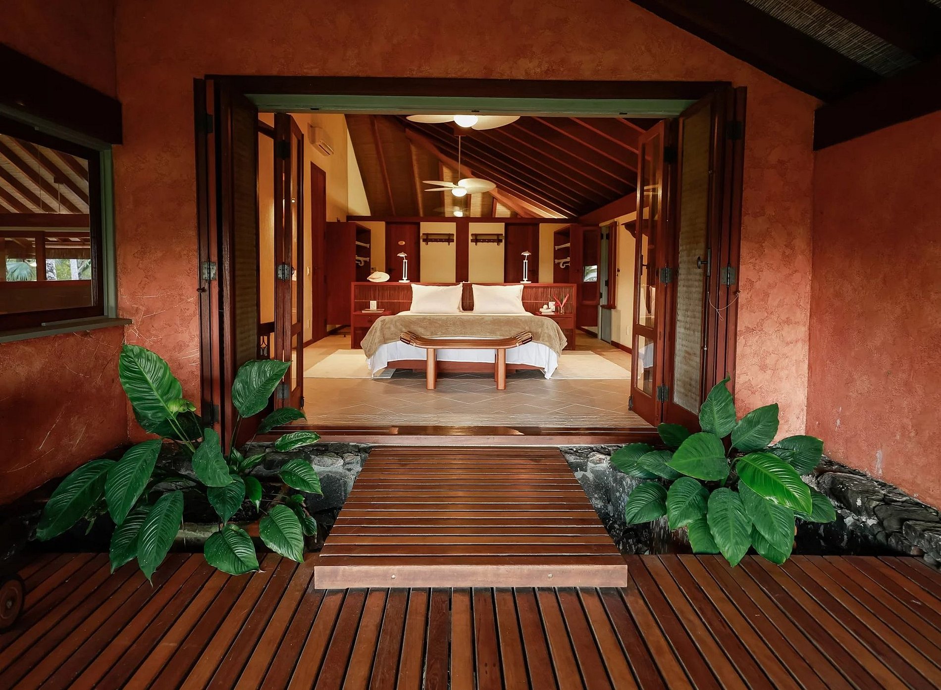 Cette sublime résidence abrite quatre suites généreuses, toutes face à la mer, équipées de systèmes de climatisation modernes et d'élégants ventilateurs de plafond. La suite parentale, véritable refuge, dispose de deux salles de bains, d'une véranda ouverte sur un jardin luxuriant et d'une vue à couper le souffle.