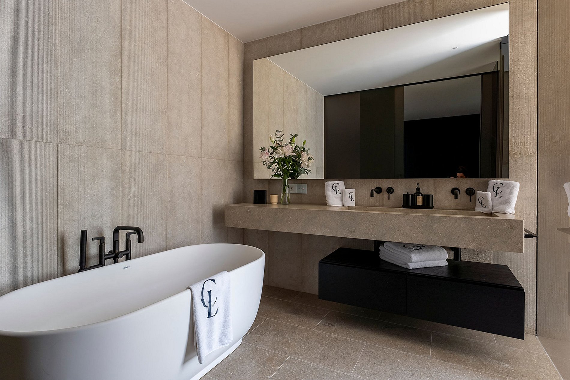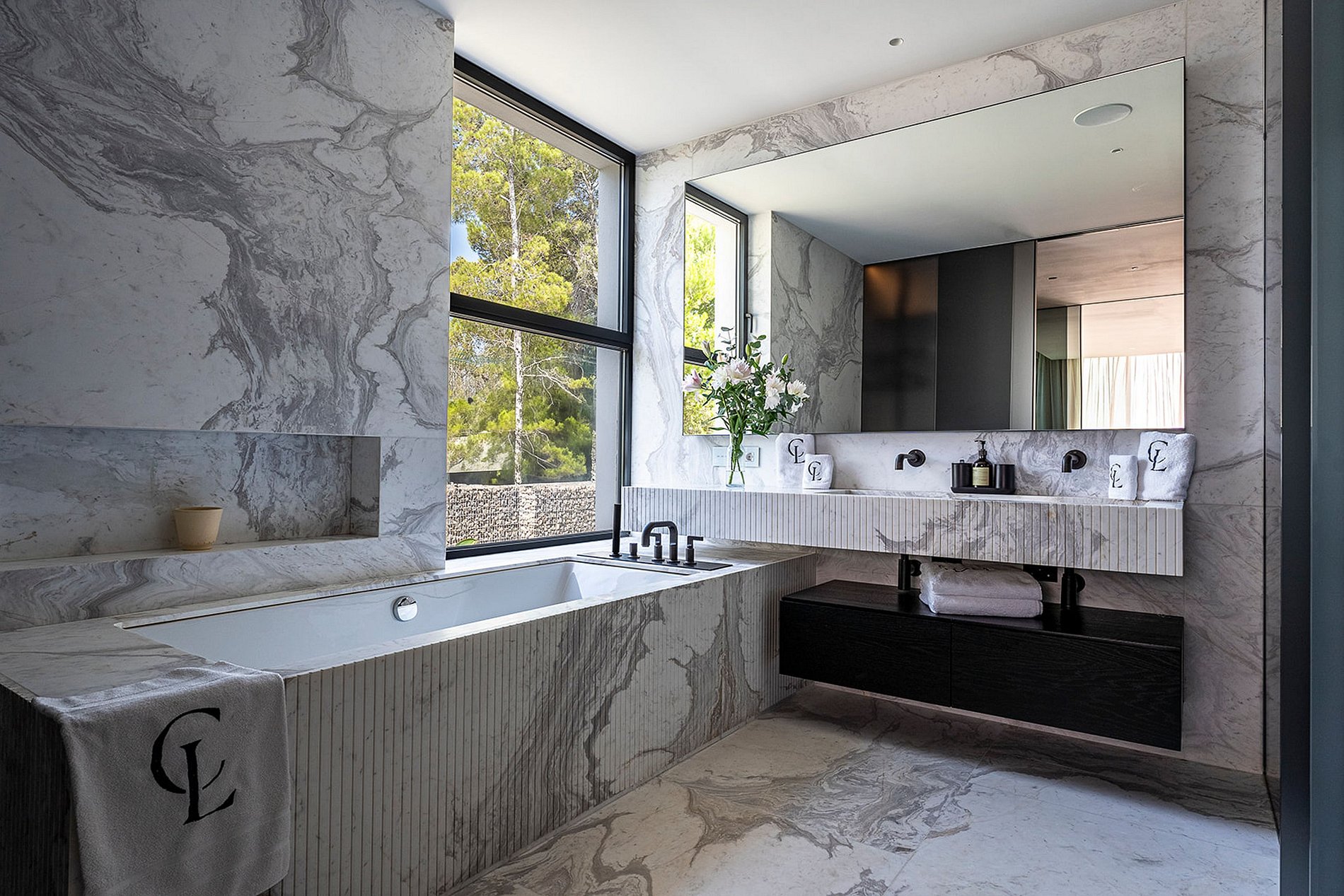 Chaque salle de bain en suite est un véritable sanctuaire de bien-être, habillée de marbre élégant et équipée de prestations haut de gamme : douches à effet pluie, baignoires profondes et produits de soins luxueux.