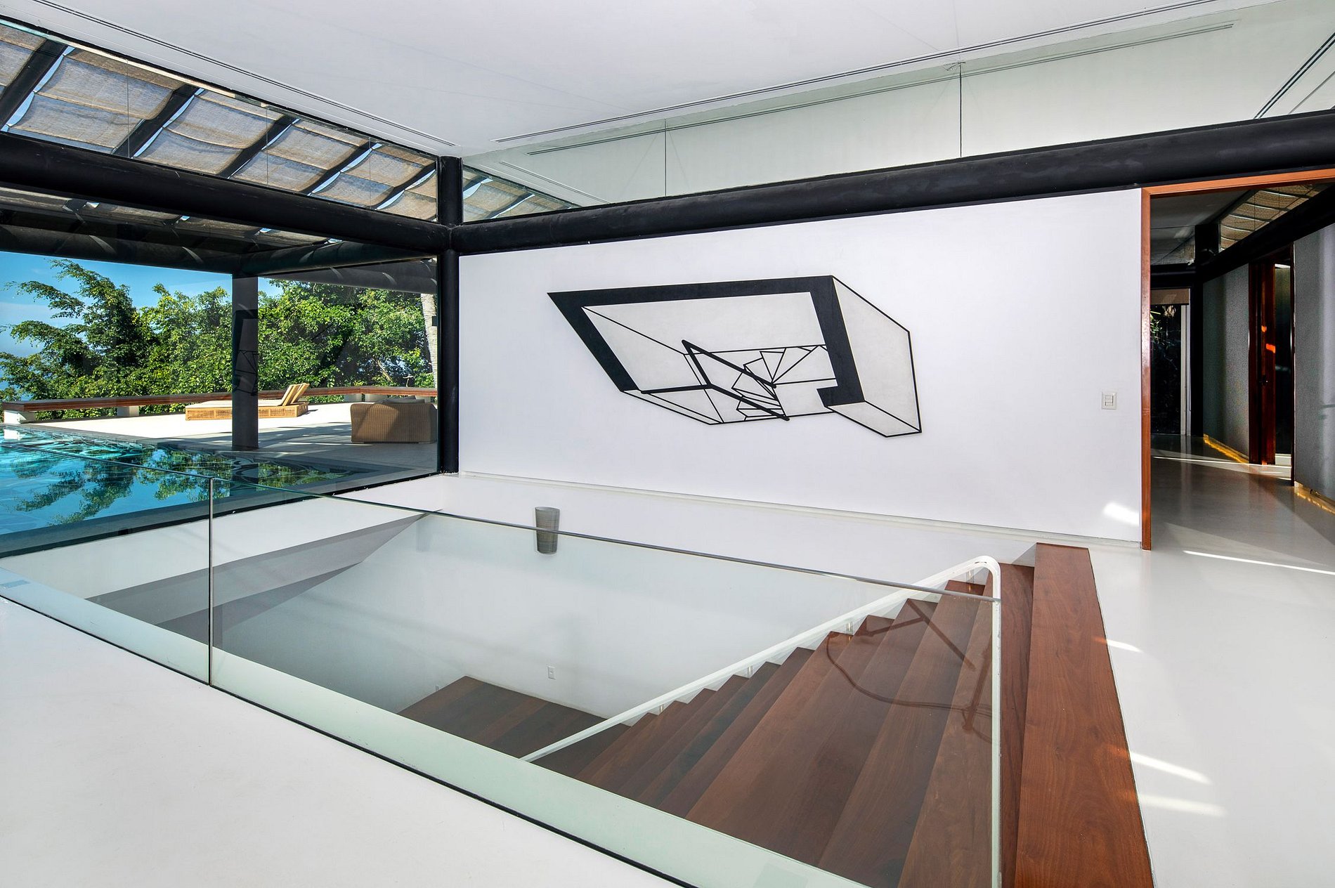 La villa elle-même est baignée de lumière naturelle, grâce aux grands murs de verre ainsi qu'au toit et au plafond en verre. Au travers de ce concept unique et innovante, vous bénéficiez d'une lumière naturelle sous de nombreux angles différents, toute la journée, du lever au coucher du soleil. Il y a aussi une piscine à débordement qui offre des vues imprenables sur l'océan.