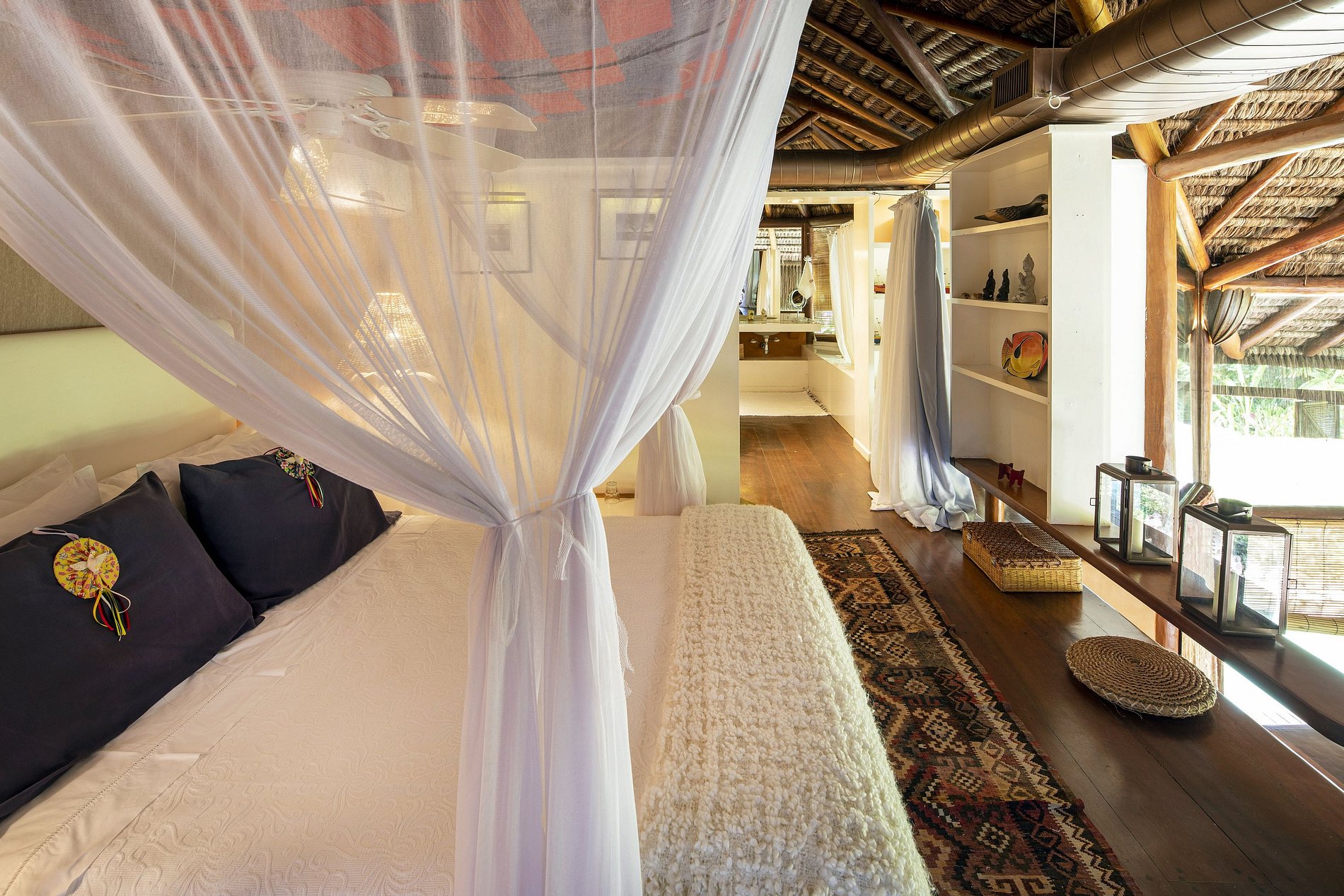 Le bar-salon dans le toit de palme tressée est l'endroit idéal pour profiter d'une caipirinha sur commande tout en ayant des conversations avec vos invités. Le personnel bien formé, compris dans le prix de la location, saura satisfaire tous vos désirs. La propriété dispose également d'une immense salle de 200m2 avec un mobilier confortable et un équipement moderne.
