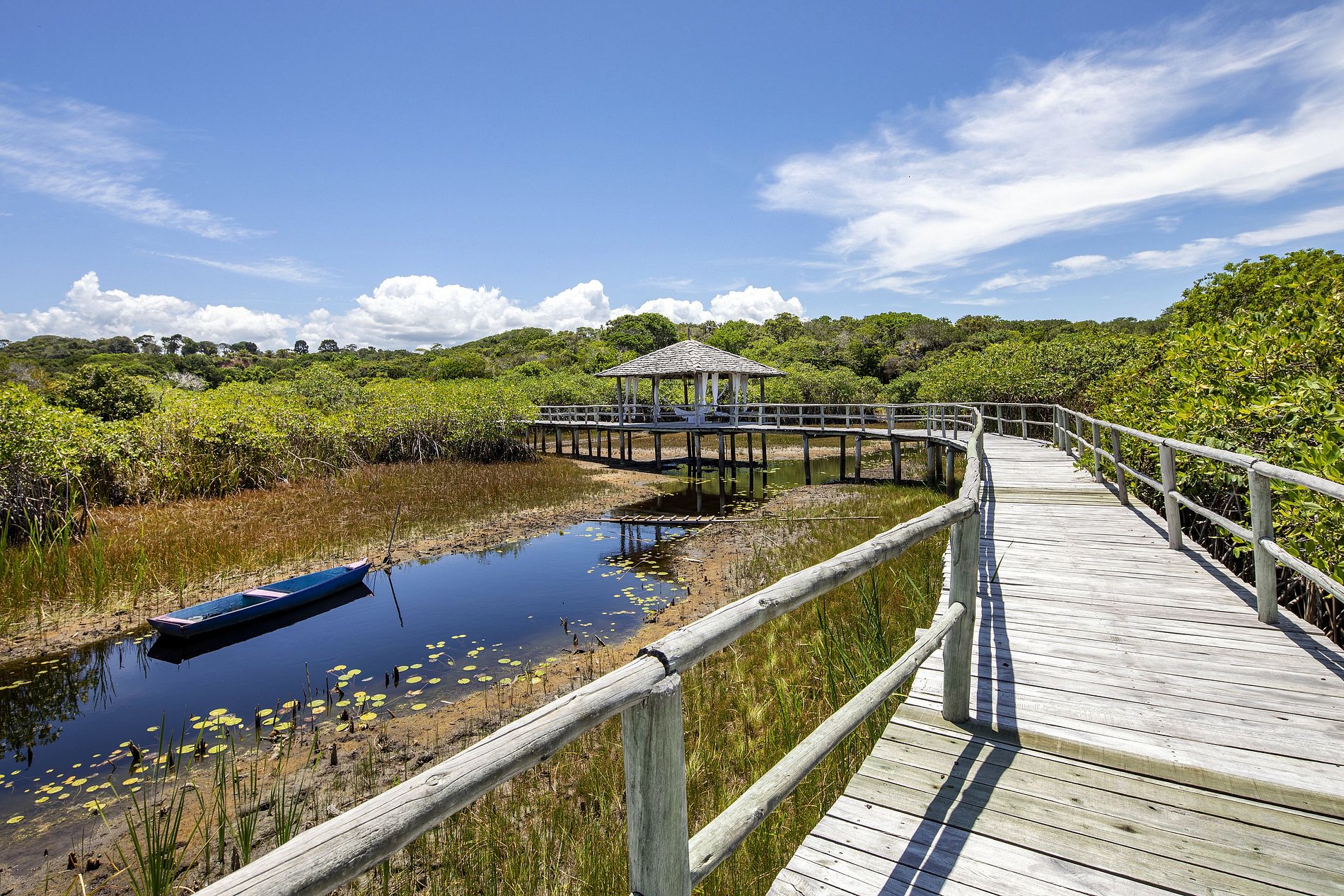 Le bar-salon dans le toit de palme tressée est l'endroit idéal pour profiter d'une caipirinha sur commande tout en ayant des conversations avec vos invités. Le personnel bien formé, compris dans le prix de la location, saura satisfaire tous vos désirs. La propriété dispose également d'une immense salle de 200m2 avec un mobilier confortable et un équipement moderne.