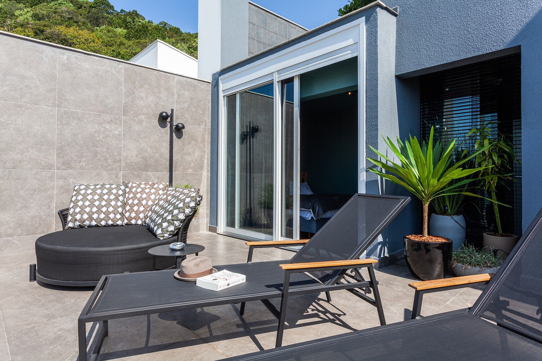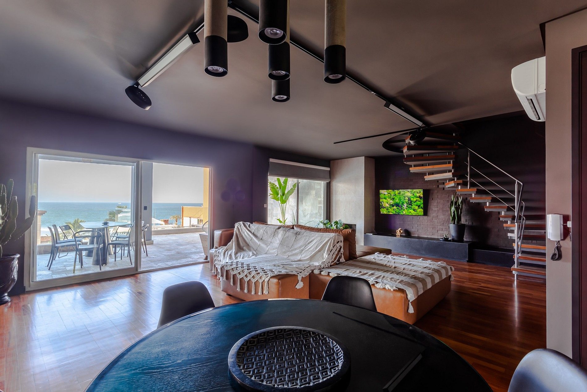 Le salon est spacieux, bien éclairé, climatisé et décoré avec soin, chaque détail a été pensé, du système audiovisuel aux meubles et parquets. La chambre a accès à un balcon avec table à manger, barbecue et une vue magnifique sur la mer.