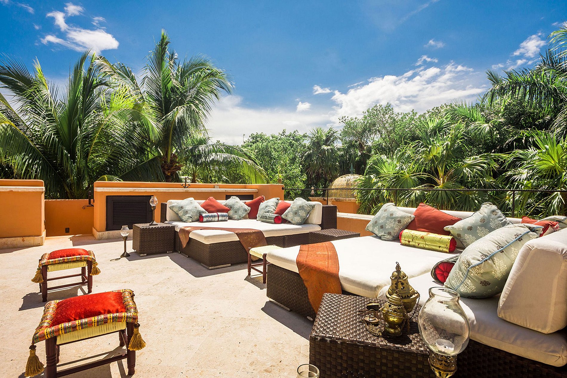 Profitez d'une véritable vie en plein air avec les grands miradors de la magnifique villa. Inspirés de l'architecture islamique, ces toits gracieux parcourent la longueur des bâtiments. Ici vous pouvez vous divertir. dîner ou se détendre sous les départs avec les invités. L’une des caractéristiques les plus élégantes de la villa est ses vastes vérandas enveloppantes, qui relient chacun des cinq bâtiments de la propriété. Dotées de sols en pierre extraits du Yucatan et de gracieuses arches, ces élégantes vérandas offrent un cadre de vie et de détente paisible à l'intérieur et à l'extérieur.