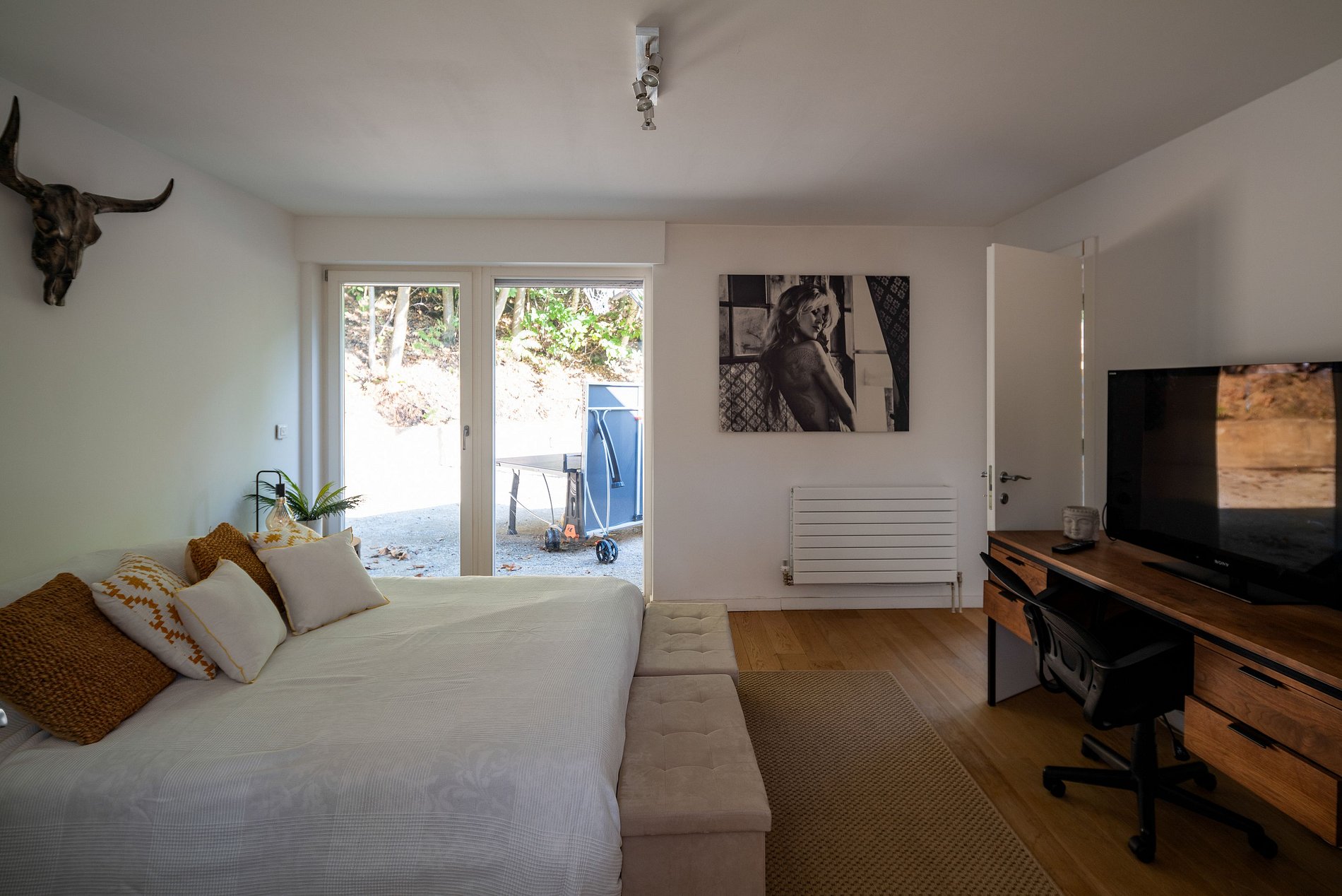 La propriété dispose de 4 chambres, chacune avec sa propre salle de bain, offrant un espace intime et confortable pour vos invités. De plus, un bureau convertible en chambre, un home cinéma et une vaste salle de sport avec sauna et salle de jeux sont à votre disposition, vous permettant de vous détendre et de vous divertir en toute élégance.