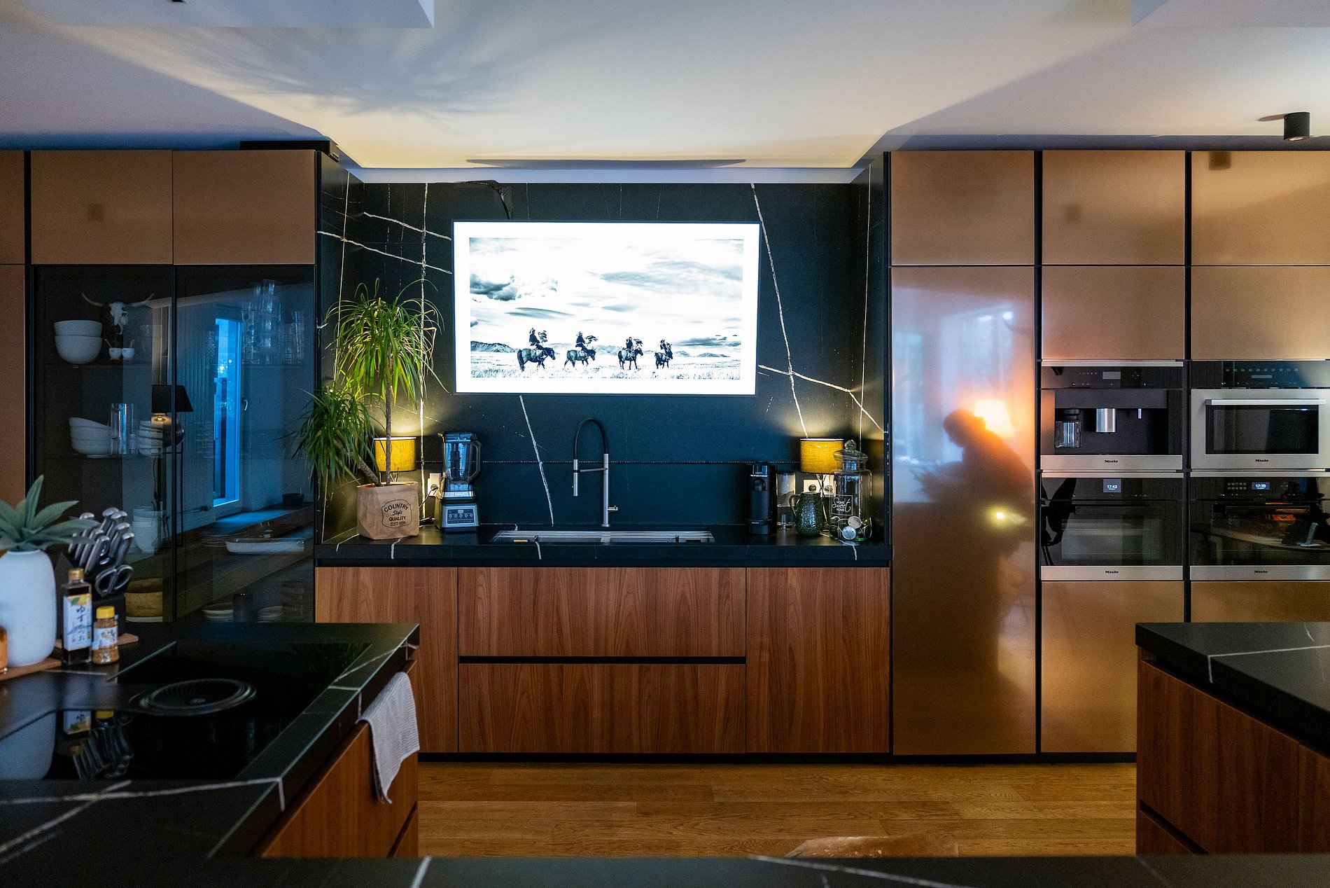 À l'intérieur, vous serez accueilli par un immense salon ouvert sur un jardin luxuriant agrémenté d'une cuisine d'été, ainsi qu'une piscine chauffée qui invite à la détente. L'ensemble crée une oasis de tranquillité et de divertissement.