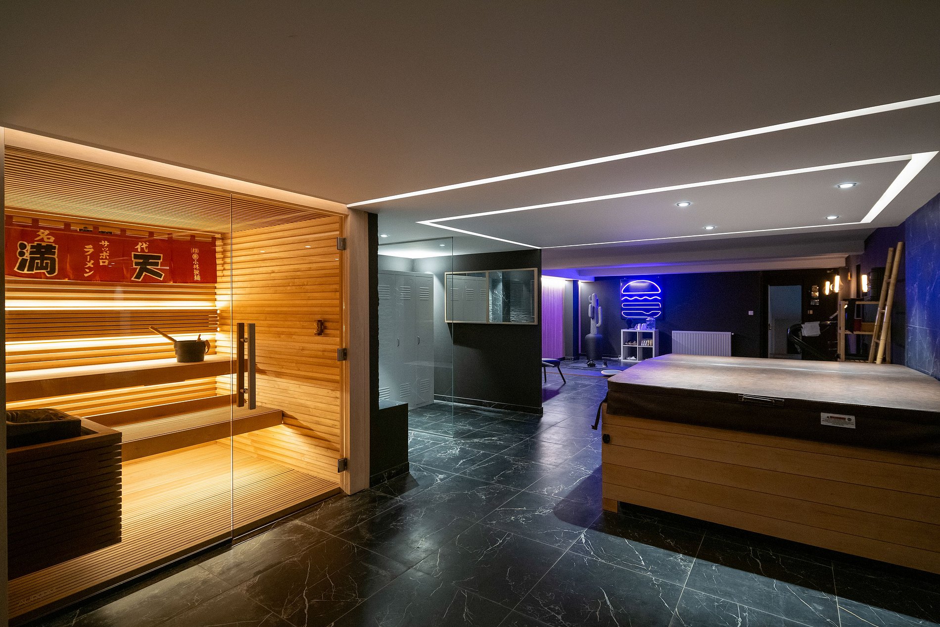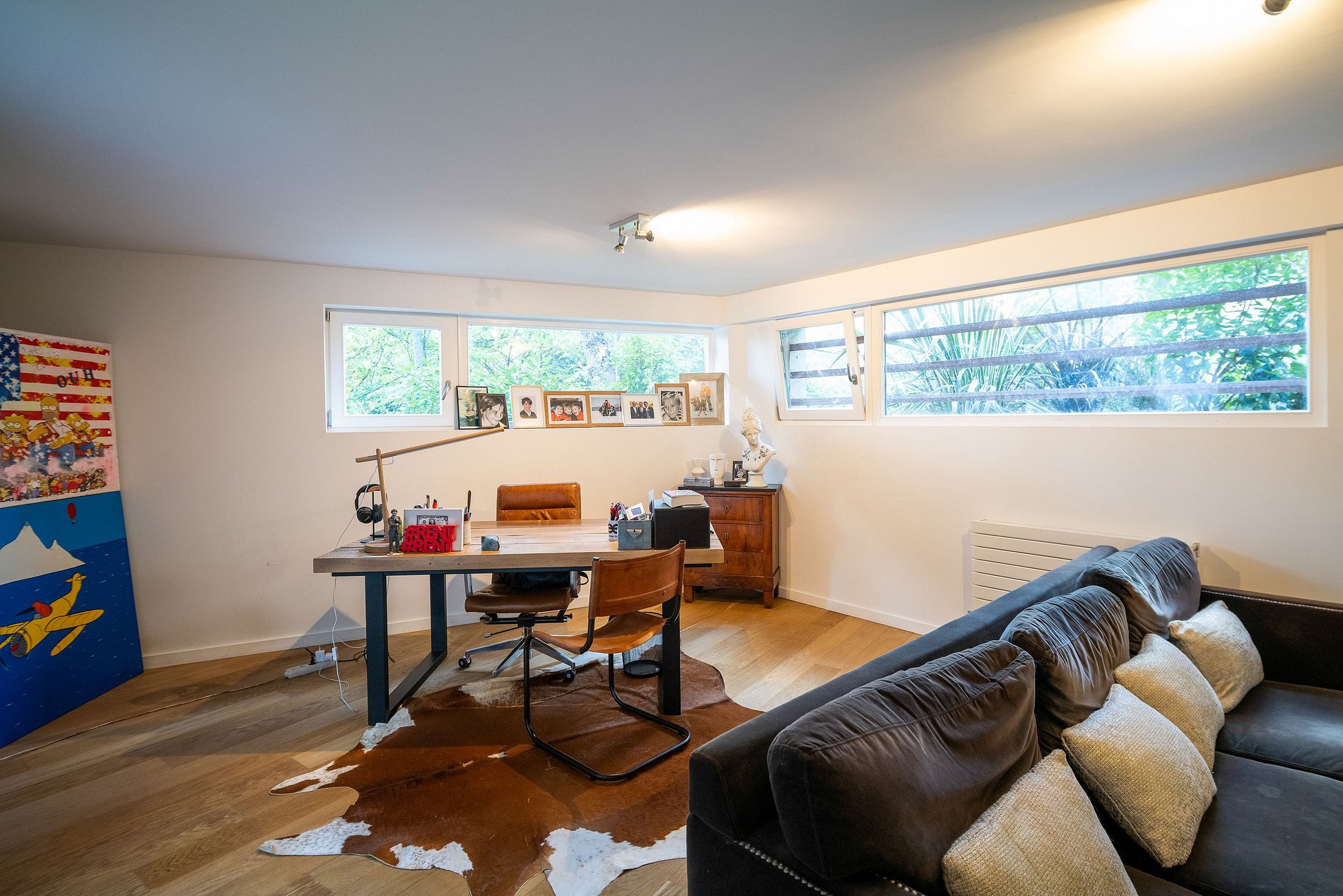 La propriété dispose de 4 chambres, chacune avec sa propre salle de bain, offrant un espace intime et confortable pour vos invités. De plus, un bureau convertible en chambre, un home cinéma et une vaste salle de sport avec sauna et salle de jeux sont à votre disposition, vous permettant de vous détendre et de vous divertir en toute élégance.