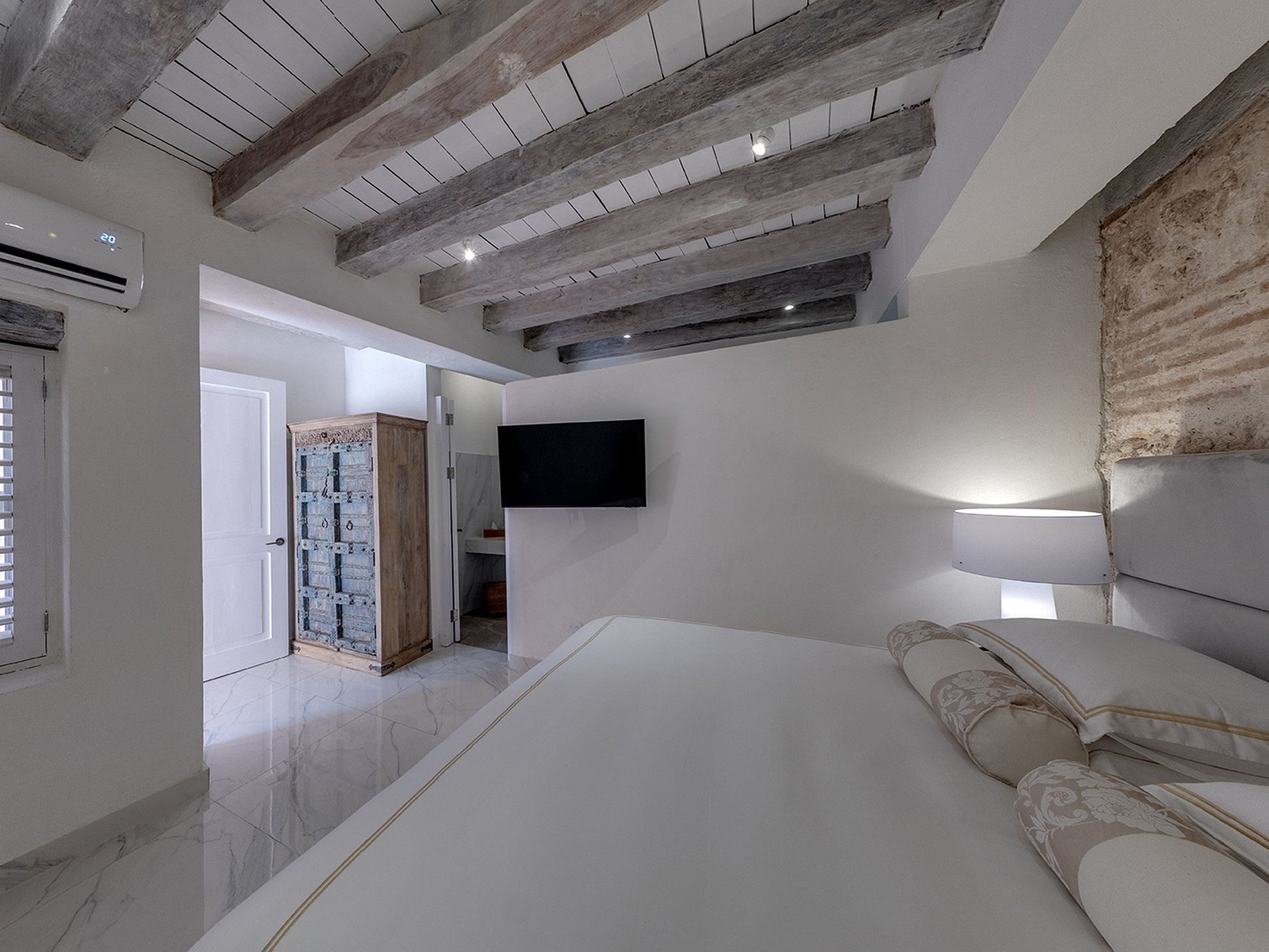 Cette luxueuse villa de 9 chambres a beaucoup de charme et de raffinement depuis son entrée jusqu'à sa terrasse de 200m2 avec piscine, qui complète l'expérience de visiter la ville magique et historique de Carthagène.