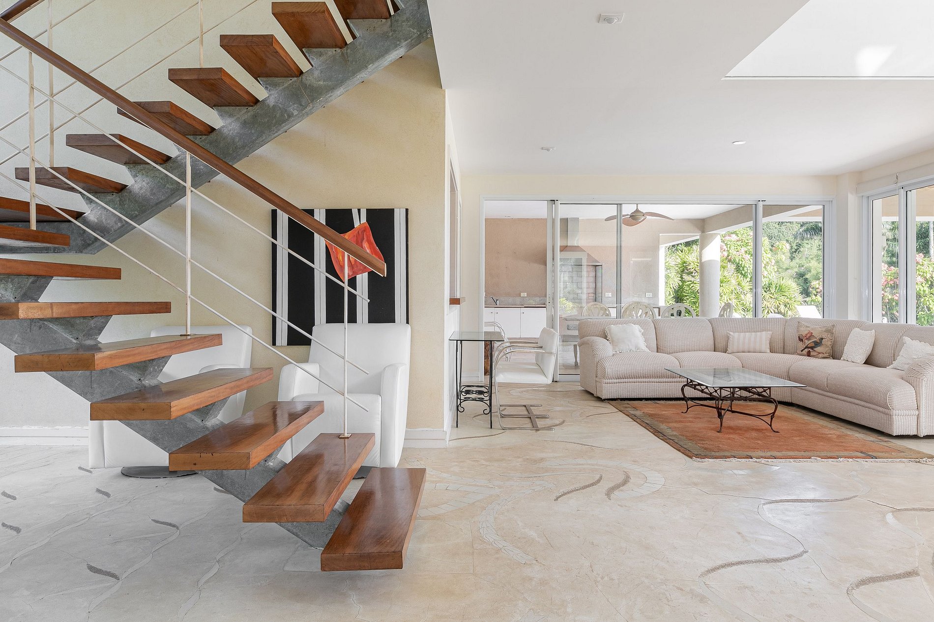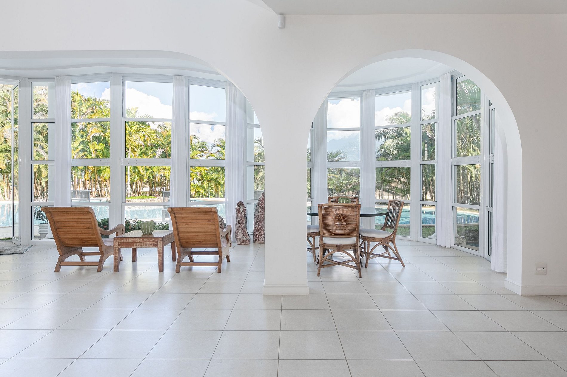 Belle villa de 2 étages avec de grandes et spacieuses pièces. Agréable espace extérieur avec belle et immense piscine, jacuzzi, barbecue et plancha qui se trouvent dans un espace couvert. La villa est entourée d'une végétation luxuriante et de cocotiers.
