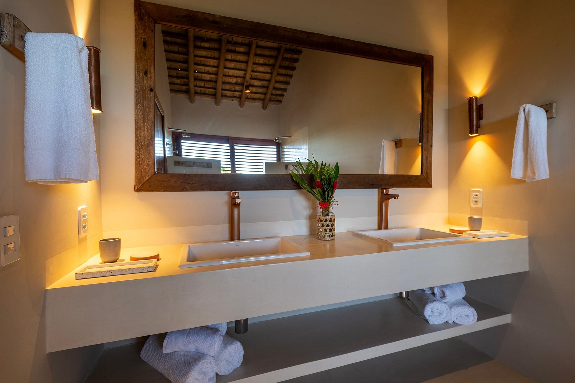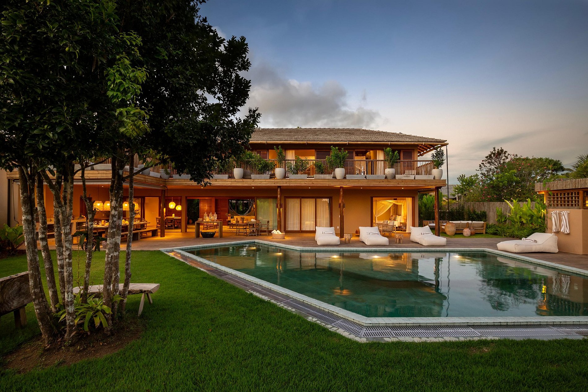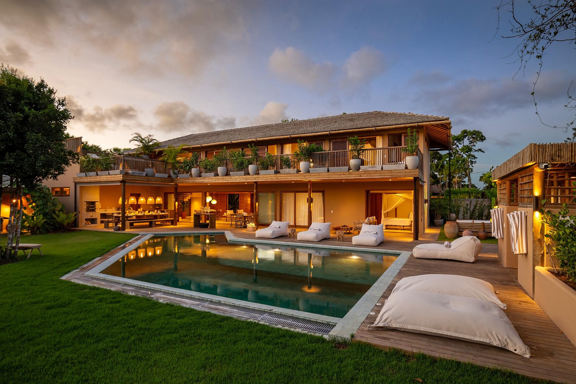 La maison principale comprend un grand salon-salle à manger, une cuisine, une salle de télévision et une suite au rez-de-chaussée. L'étage supérieur comprend trois suites, un solarium, un jacuzzi et un hamac de massage. On y trouve également un espace détente et un balcon avec une piscine à fond vert. La cuisine extérieure est équipée d'un plan de travail avec un évier profond, un congélateur, un congélateur horizontal et une cuisinière industrielle. Un espace gourmand est également disponible avec un barbecue et des glacières à bière. Serviettes de plage et de piscine fournies.